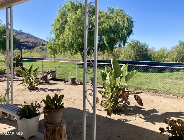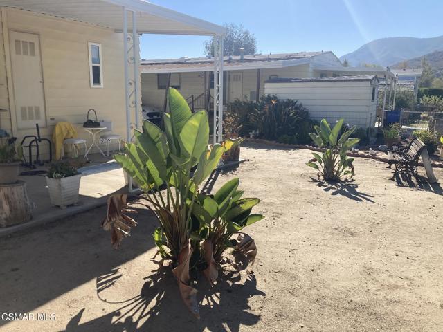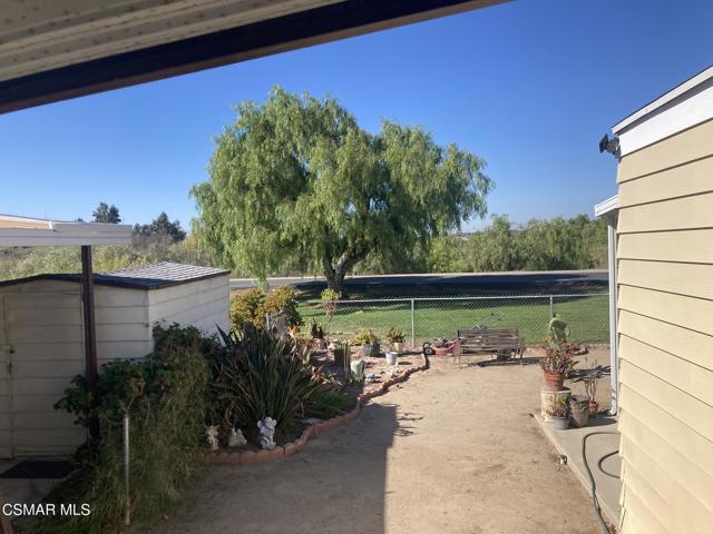 VIEW - VIEW- VIEW: Beautiful view of the sunsets & hills, backs open space and the Arroyo, This 2 bedroom 2 bath home needs some updating. Exterior has been freshly painted, hot water tank 5 yrs. old. City of Moorpark financed new roof, double pane windows, earthquake bracing in 2005. Home has a spacious porch, light and bright living room, dining room with built-in hutch, very large kitchen, laundry room with ample storage that leads to carport, Oversized shed with add on storage. Fenced backyard. New space rent is $960.00