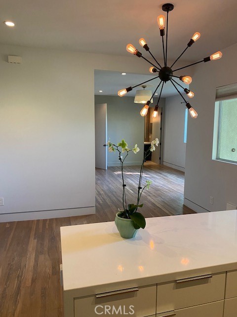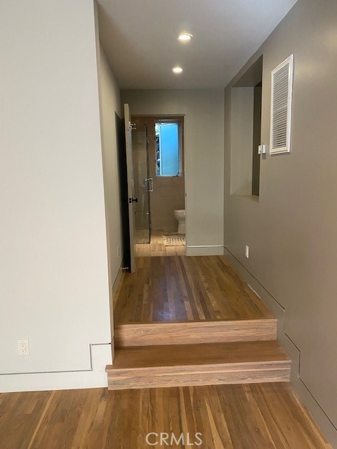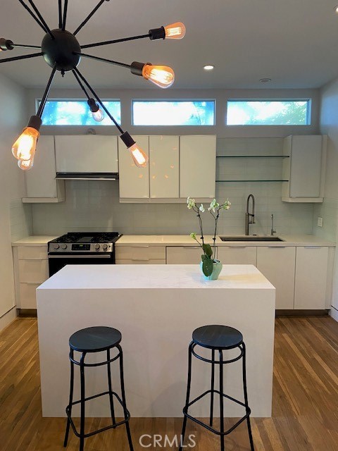 Silverlake Luxe Apartment located across from Silverlake Reservoir, walking paths, the Meadow & Lamill. Private gated secure compound, common area courtyard with pond, mature plants & beautiful grounds. 1 bedroom plus 2 baths. Large bedroom with ensuite bath, double sink, office/sitting area & walk-in closet with built-ins. Open concept kitchen & living room with 2nd bath. Kitchen with Island, dishwasher, filtered water & quartz counter tops, with private front door porch. Wood floors throughout, high ceilings and large windows, with designer lighting & fans. Central Air conditioning and Heat plus private in unit Washer/Dryer.