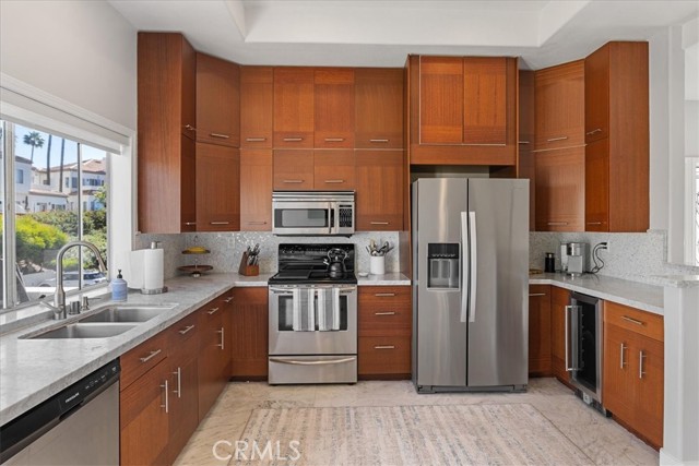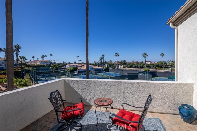 Gorgeous transitional contemporary ocean view condominium in Monarch Beach's prestigious and exclusive gated community of Tennis Villas. Expansive and panoramic views of the ocean, Catalina Island, trees, hills, city lights, sunsets, tennis courts, and Waldorf Astoria Resort & Spa just across the street. Perfect location for enjoying the best the coastal region of South Orange County has to offer. This condo is within walking distance of Salt Creek Beach, Monarch Links Golf Course, the Waldorf Astoria, the Ritz Carlton Laguna Niguel, and numerous parks, shops, and restaurants. This beautifully remodeled upstairs condo is spacious, open, light, and bright with amazing views and is located adjacent to the Monarch Beach Tennis Club. Sit down ocean views from the primary bedroom, balcony, kitchen and living room! Some upgraded features include new paint and baseboards, new LED recessed lighting, newer blinds and sheer curtains. A prior remodel boasts marble countertops and flooring, and beautiful wood cabinetry throughout. The kitchen area is opened up to maximize the wonderful ocean views and create a more cohesive and inviting living space. There is an interior laundry room with a washer and dryer. The west-facing balcony is off of the living room and primary bedroom, the best spot for unbelievable sunsets, ocean breezes, and stunning views. In addition, there is another balcony off the kitchen facing east - perfect for your BBQ, plants, and another sitting area. The primary bedroom has two mirrored closets (one walk-in), the guest bedroom has ample closet space, and both bedrooms boast elegant laminate wood flooring. two-car garage with some storage cabinets. The garage is below the condo so it is accessed by way of the stairs to the left of the garage. This is a private, gated community with an association pool and spa. Laguna Beach is also just minutes away with free transportation available via the Dana Point Trolley which connects to the Laguna Beach Trolley. There is a beautiful and very scenic walking path by way of the Waldorf Astoria Resort, past the villas and golf course which leads you right to Salt Creek Beach. Enjoy concerts and events during the summer in Sea Terrace Park. Live the Monarch Beach lifestyle and enjoy the perfect weather and climate year-round. This property is being offered unfurnished. Tennis Villas is a non-smoking community. Tennis Club Membership is separate from the leasing of this property. Memberships are available.