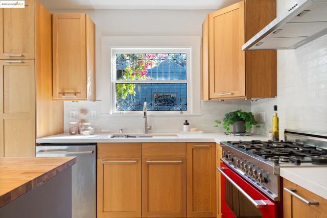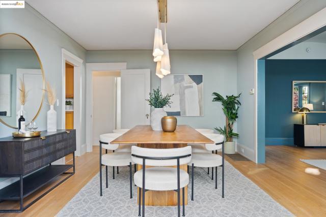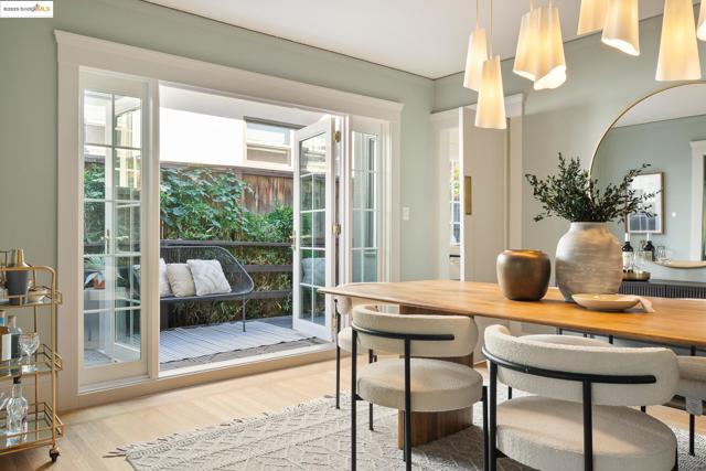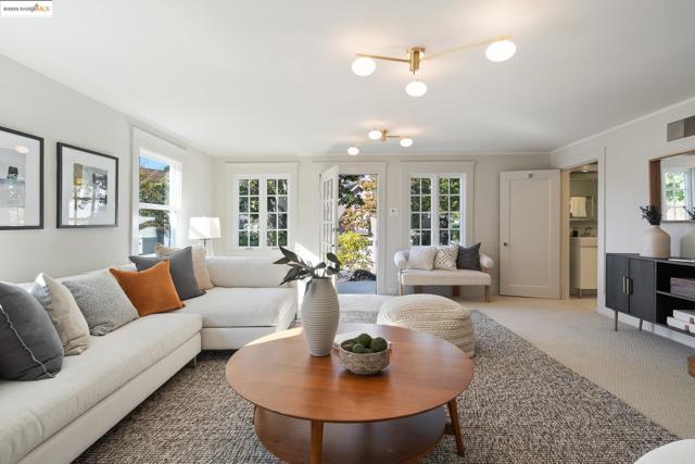 Situated in the heart of Crocker Highlands, this light-filled Traditional offers comfort, privacy & classic charm. Elevated above the street, the home features a sunny living room w/ barrel cove ceilings, treetop views & original wood-burning fireplace. The formal dining room opens to a private deck through French doors, while the adjacent eat-in kitchen boasts a pro-grade 6-burner Bertazzoni range, large center island, under-counter laundry & generous storage. Three bedrooms & 1.5 baths are located on the main level, including a rear bedroom that opens directly to the private garden. Downstairs, a separate-entry den w/ full bath creates ideal space for guests, home office or au pair. Enjoy rear gardens w/ grassy lawn, a two-car garage tucked behind the home, & a peaceful sense of separation while being moments from award-winning Crocker Highlands Elementary, the Grand Lake Farmers Market, shops & dining, Lake Merritt, & easy Bay Bridge access. A turnkey gem in a coveted neighborhood. Views: Downtown