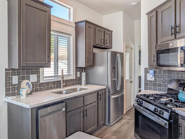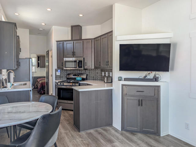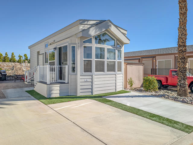 Presenting an exceptional opportunity to own a pristine 2023 Cavco Park Model, ideally suited as a primary residence or vacation retreat in the desert. This well-appointed home offers approximately 400 sq. ft. of efficiently designed living space featuring one bedroom and one bathroom. The interior boasts premium upgrades, including dark cabinetry, contemporary finishes throughout, and modern appliances, such as a built-in dishwasher. Climate control is ensured year-round with ductless heating and cooling. Additional highlights include volume ceilings and a generously sized stamped paved driveway. Enjoy sweeping views of Mt. San Jacinto from the main living area as well as outdoor areas of this remarkable space. The property is situated on a desirable lot within the park, enhanced by mature landscaping and a terraced, paved backyard that is ideal for entertaining or stargazing. Recent improvements feature drought-tolerant plantings and an outdoor area tailored for relaxation and social gatherings. This residence is offered fully furnished for immediate occupancy. Caliente Springs Resort provides residents with outstanding amenities, comprising a mineral hot spring-fed pool and spas, a fitness center, a 9-hole golf course, 8 pickleball courts, tennis courts, laundry facilities, a library, and chapel services. The vibrant community setting presents ample opportunities for social engagement. Please note: Park approval is required prior to submitting an offer. The lot is leased; monthly space rent is $707.