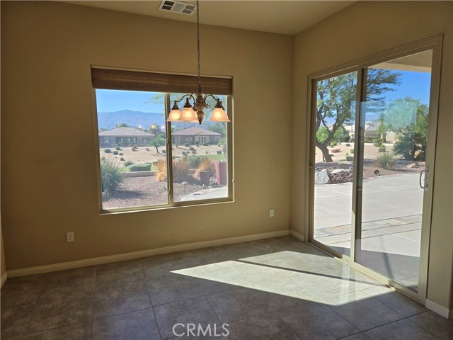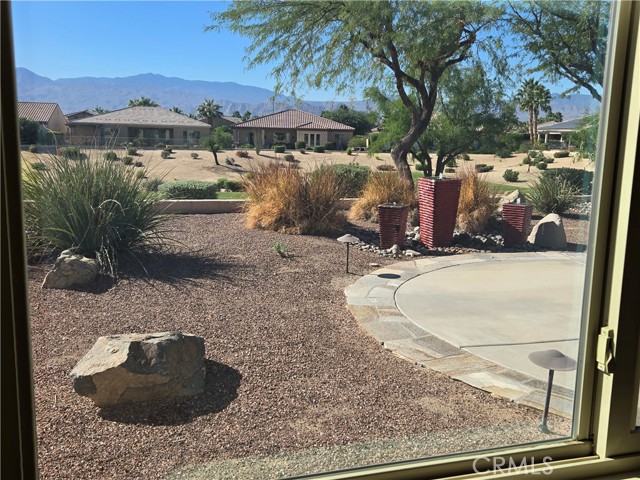 GOLF COURSE HOME! Welcome to the 'Hospitality' model in phase 3, Sun City Shadow Hills, an active +55 community. This community is desert living at it's best and offers many clubs and activities for many lifestyles. This home has a spacious open floor plan, has all tile floors (no carpet), 10 foot high ceilings, and large windows overlooking the golf course. There are 3 bedrooms with the primary ensuite located on the opposite side of the house. The great room is very spacious with adjacent dining area with sliding glass door out to the very large and covered patio. The kitchen has granite counters with large island and stainless steel appliances-cooktop, and double ovens. The 2 full bathrooms have Piedrafina marble counters. The primary bathroom also has large spa type tub, separate walk in shower, double vanity and large walk-in closet. Additional features include a separate laundry room, 2-car garage with additional 2 foot extension. The backyard overlooks the golf course, has a lava type rock fire pit and a water feature. The front yard has a lush green lawn. The amenities in this low HOA dues community feature, pickleball courts, tennis courts, bocce ball, 2 outdoor pools and 1 indoor pool, 2 gyms and spacious room for exercise classes. There are 2 dog parks, beautiful walking area, 2 golf courses with a separated putting course, 2 club houses plus there is the Shadows restaurant! The community also has 24/7 guard gates and transponder only secondary gates. Sun City Shadow Hills offers a blend of comfort and lifestyle with a sense of community.