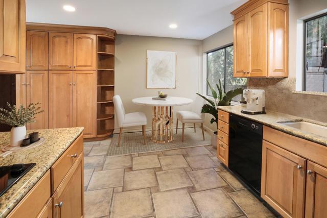 This rare one-story detached end-unit townhome, with NO SHARED WALLS, offers 1,700 sq ft of comfortable living space in the highly desirable Sharon Oaks neighborhood of Sharon Heights. Located on a peaceful cul-de-sac, the home is bright and inviting, with skylights and an open floor plan that creates an airy, spacious feel. The living and dining areas feature a cozy fireplace and sliding doors that open to an oversized private yard, while a separate retreat includes a wet bar and space for additional entertaining. The gourmet kitchen offers granite countertops, beautiful cabinets, ceramic cooktop, double ovens, along with a convenient eating nook. French paver tile floors pair beautifully with brand-new carpeting adding warmth and elegance to the interiors. Both bedrooms are en suite, with the primary suite offering dual sinks, separate tub and generous closet space. A guest powder room, indoor laundry and attached two car garage provide extra convenience. This home combines privacy and comfort in one of Menlo Parks most sought-after communities. Sharon Oaks has two community pools and Clubhouse. Close to Stanford, Safeway, dt Menlo Park, 280, Sand Hill Rd. Las Lomitas School District. Water/Garbage/Gardener included.