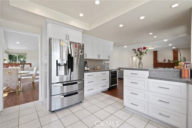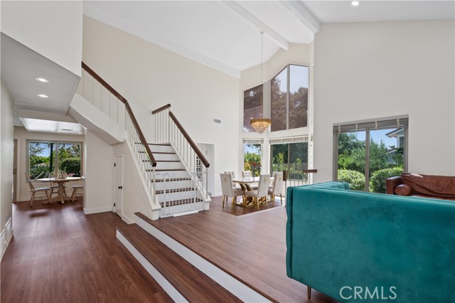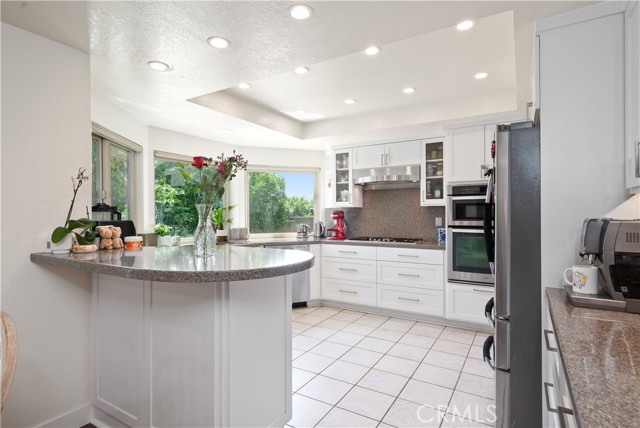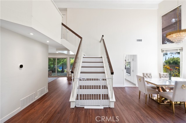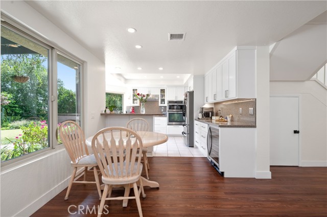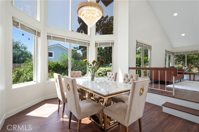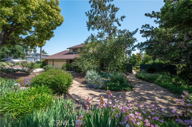 Nestled on a beautiful street, this stunning home is a spacious beauty. The house sits back in a luscious bed of artistically designed landscaping. As you enter, you're greeted by an updated, bright living and dining area filled with natural light. The updated kitchen offers panoramic views of the backyard, perfect for enjoying the scenery while you cook. Downstairs, you'll find an office with built-in cabinets, which can also serve as a bedroom. The family room, complete with a fireplace, is ideal for cozy evenings. Upstairs boasts three spacious bedrooms, including a bright primary room with a large en-suite featuring a soaking tub. One of the bedrooms offers calming views of the mountains. The backyard provides many sitting areas. The pool will be a nice place to relax and enjoy the California sunshine. The updated three-car garage includes plenty of storage and newer epoxy floors. Close to shopping and walking trails.