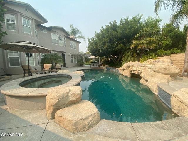 Incredible 5 Bedroom, 5 bath home located in the Prestigious Guard Gated Woodridge Estates Community! This home offers beautiful kitchen with granite counters, Viking appliances with eat-in kitchen. One guest room with full bath as well as home office located downstairs. The upstairs boasts large master bedroom with bonus room, walk-in double closet und laundry room. Beautifully landscaped backyard with pool & spa, fireplace, built-in bbq and basketball court.Low traffic, in a private, secure guard-gated neighborhood surrounded by views of the beautiful Conejo Valley Mountains. Highly rated CVUSD. Easy access to the 23 and 101 freeways make this an ideal location. Shopping, entertainment, dining, recreation and many nature trails surround the areas nearby. Pool and gardening services included. Pets will be considered with increased deposit. No smoking please. Available now.