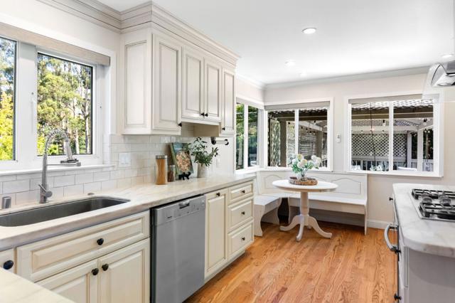 EXTENSIVELY REMODELED OVER TIME! This corner-lot home with LOTS OF PRIVACY & hillside views/greenery sits on an oversized lot in one of San Mateo's most sought-after neighborhoods, w/ great schools including Aragon High. Beyond the double doors, a bright living room features large windows, a brick fireplace, hardwood floors, baseboard / crown molding, & cove lighting. The floor plan flows into a formal dining room & remodeled kitchen w/ custom cabinetry, marble counters, center island, breakfast nook, pantry, & Miele appliances including a steam oven, microwave, gas stove, range oven, & dishwasher. A spacious family room offers built-ins, French doors, & a hidden wet bar. Primary suite has an updated bath w/ frameless walk-in shower. 3 additional bedrooms includes a guest retreat w/ half bath. Updated hallway bath has frameless glass shower & wood-paneled tile. Other features: attic fan, LG washer/dryer, pantry w/ 2nd fridge, newer AC, hi-eff heater, performance water heater, new sewer line, attic/basement insulation, seismic shear walls. Spacious garage w/ abundant storage. Backyard sanctuary w/ redesigned landscaping, paver patio, deck, covered seating, & gardens. Close to Hwy 92/280/101, College of San Mateo, Crystal Springs trails, Crystal Springs Village, & Laurelwood shops.