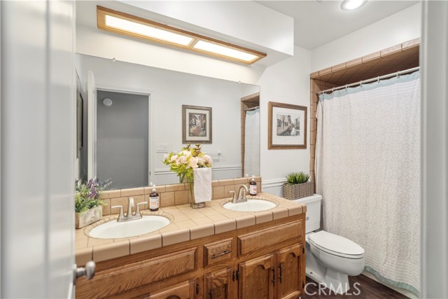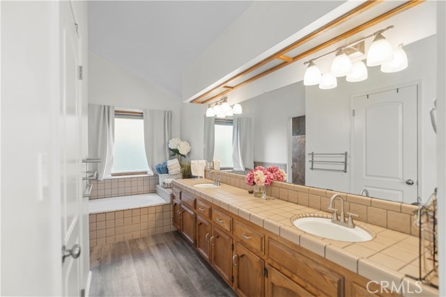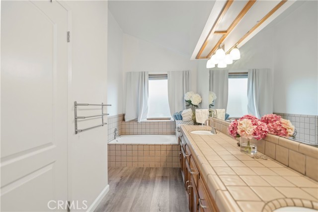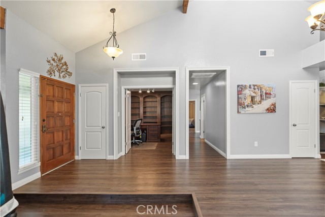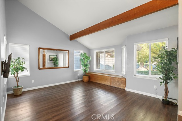 Welcome to this exceptional Laurelglen property that perfectly blends classic comfort with modern efficiency! Outside, showcases great curb apeal with mature landscaping. Enjoy immediate savings thanks to the valuable addition of paid-off solar panels.The home boasts a bright and airy atmosphere, featuring vaulted ceilings and beautiful wood-look flooring throughout the main living areas. The family room is an ideal space for gathering, centered around a charming brick fireplace. For the modern professional, a dedicated home office awaits, featuring impressive built-in wood bookshelves.The primary suite offers a luxurious escape. Spacious master bedroom including a well-appointed double sink bathroom a relaxing soaking tub, and a separate, beautifully tiled walk-in shower. Practicality is covered with a convenient indoor laundry room that includes ample cabinet storage, and a large walk-in closet.