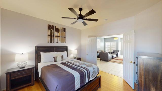 Located in Bella Vista, this beautifully maintained 4-bedroom, 3-bath home with a 3-car garage delivers the comfort, convenience, and desert lifestyle buyers want. Sold turnkey furnished (included in sale), it's truly move-in ready--ideal for families, relocation, or a second-home retreat. Light and bright interiors feature vaulted ceilings, plantation shutters, a welcoming living/dining area with fireplace, and a separate family room off the kitchen--creating multiple zones for gathering and everyday living. The generous primary suite offers its own fireplace, sitting area, spacious bath with separate tub and shower, and excellent closet storage. Outside, enjoy a private backyard with pebble-tech pool and spa, perfect for relaxation and kids' play, plus ample patio space for easy outdoor dining. Close to top schools, quick freeway access, shopping, dining, golf, and entertainment, this home blends lifestyle and convenience in one of La Quinta's most accessible neighborhoods.