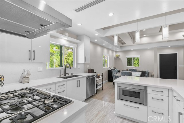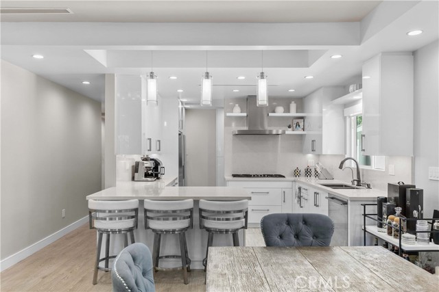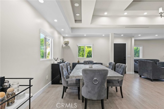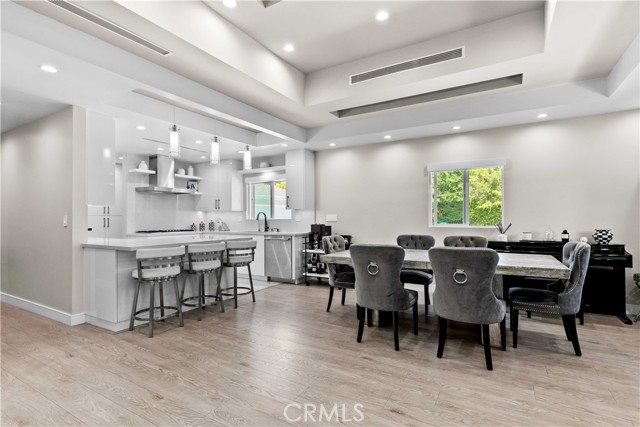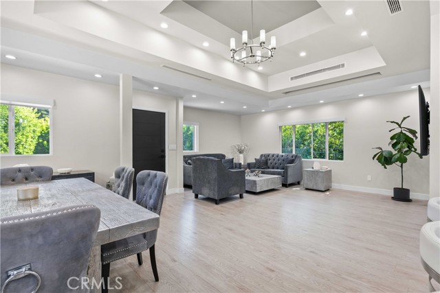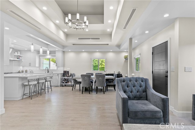 This beautifully fully remodeled 3-bedroom, 2-bath home combines modern design with everyday comfort. Step inside to an open-concept layout where the chef’s kitchen flows seamlessly into the dining and living spaces. The kitchen features sleek white cabinetry, quartz countertops, a spacious island with bar seating, and contemporary pendant lighting—ideal for both entertaining and casual family meals. The dining area is framed by tray ceilings, recessed lighting, and large windows that fill the space with natural light, creating a bright and welcoming atmosphere. Elegant flooring runs throughout, complementing the home’s clean lines and modern finishes. Good sized bedrooms, including a private primary suite, offer comfortable retreats with updated bathrooms featuring stylish tile work and fixtures. Junior ADU permits and drawings are available, it is approved and is ready for the new buyer to build. Located in a desirable neighborhood, this home is close to schools, shopping, dining, and freeway access, making it the perfect balance of convenience and style.