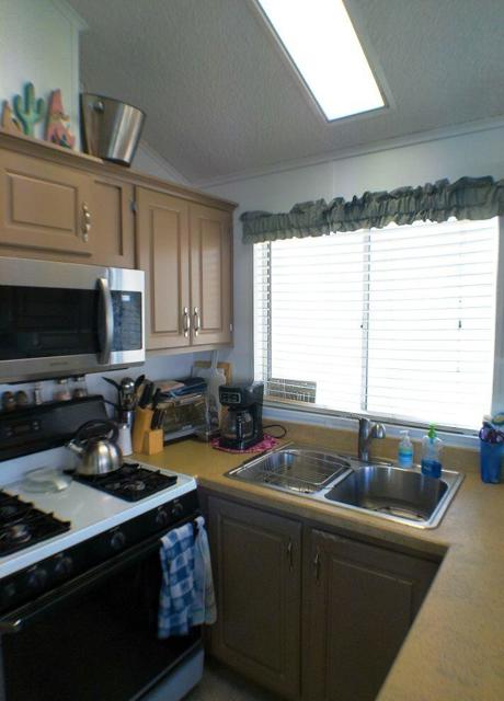Location, Location! This Park Model is on a waterway that encompasses the Main Clubhouse in the Park. Entertain on the deck with this outstanding view. Yards to the Club House, Pool/Spa, Card Rooms, Main Hall and other activities within the building. Bathroom has been remodeled. A Must See!