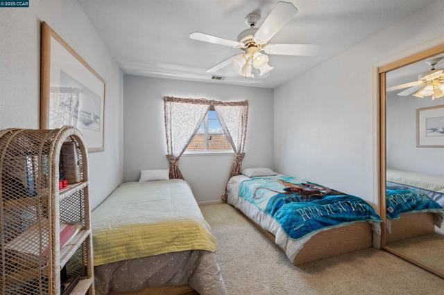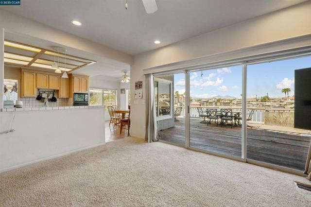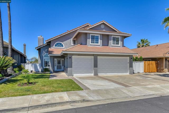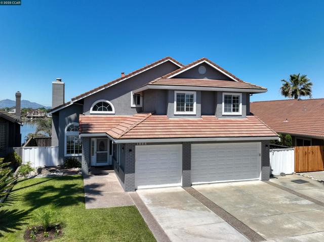 Lovely spacious waterfront home with stunning views, huge private double U-shaped boat dock, and a 3 car garage. This popular floor plan features 5 bedrooms (possibly 6), 3 bathrooms, large kitchen with breakfast nook, dining room, and laundry room. Huge 5th bedroom could be used as a game room. Features downstairs bedroom / bathroom. Spacious, inviting family room features a fireplace and sliding glass door leading to the covered deck. Living room features vaulted ceilings. Large kitchen features an island and an oversized breakfast nook with windows showcasing views of the water. Primary suite features sliding glass door to balcony and a huge walk-in closet. This well-maintained home has known only one owner. Enjoy spectacular sunsets over Mount Diablo and breathtaking water views. Perfect for entertaining! Oversized driveway and possible side yard access. Room for all of your water toys! Access to over a thousand miles of delta waterways from your backyard! NO HOA!