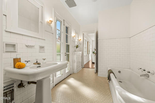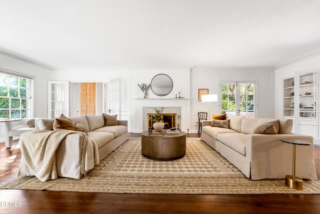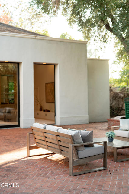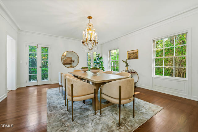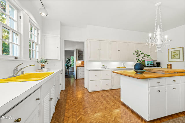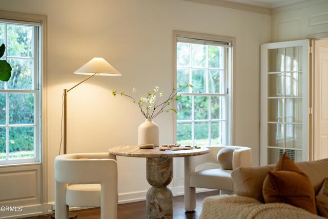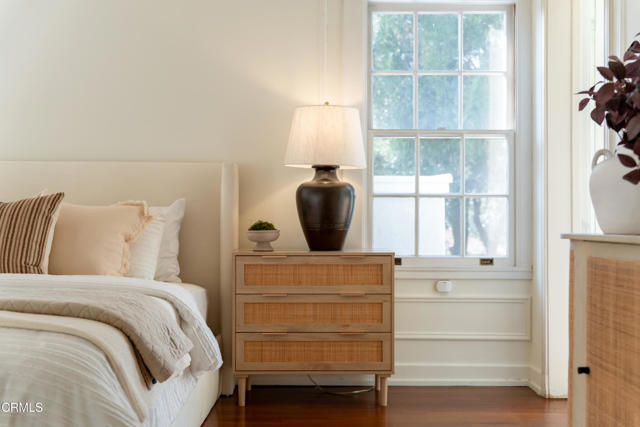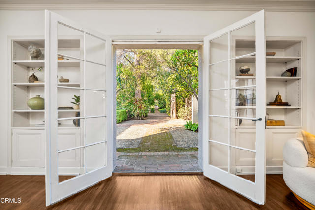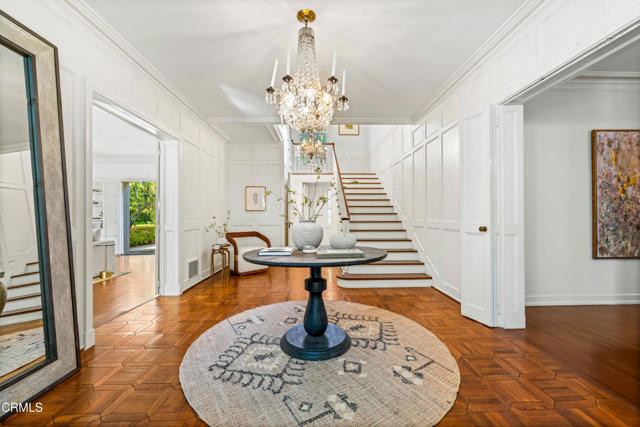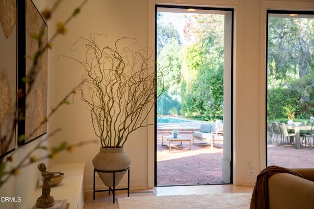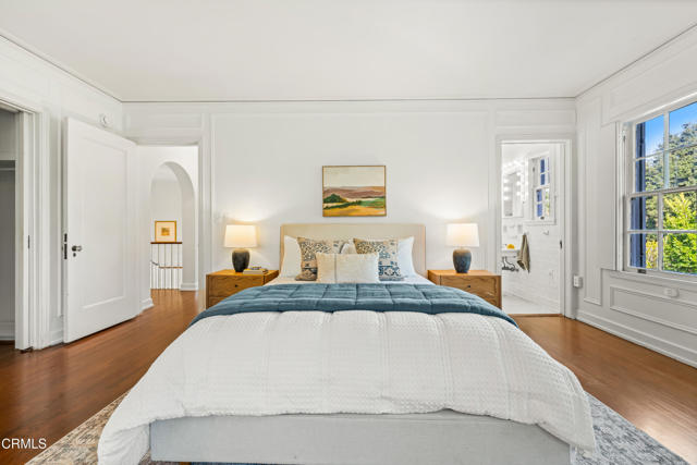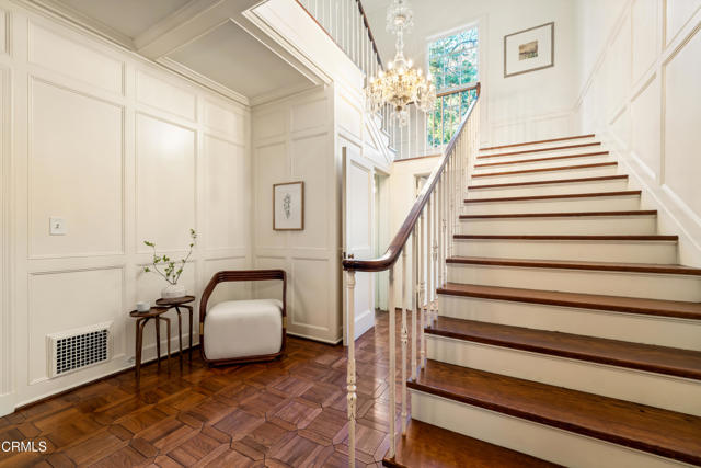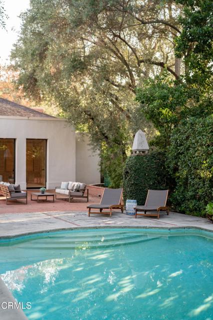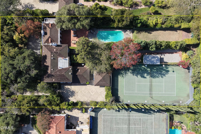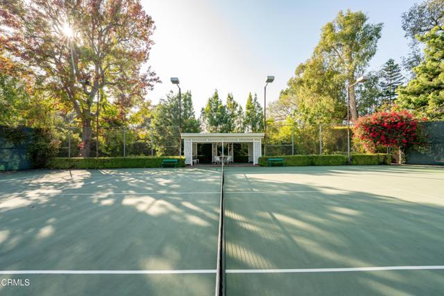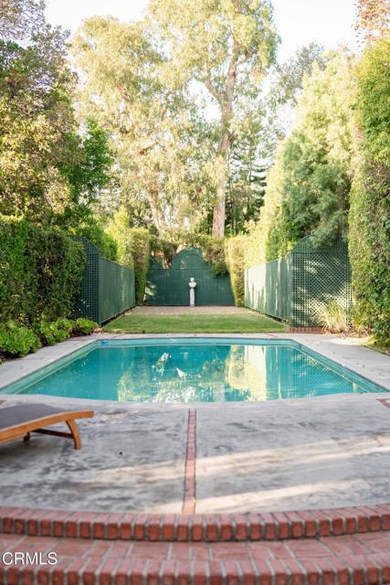 Secluded beyond lush hedges and a private gate, this distinguished 1923 estate by celebrated and important architect Reginald Johnson embodies timeless elegance and is located on a full level acre just north of The Huntington Library. Spanning over 5,000 square feet, the home's gracious interiors begin with a wood-paneled central hall which opens up to a light-filled living room with three French doors, an elegant dining room and a chef's kitchen with generous island, butler's pantry, and breakfast nook. Its grand staircase leads to two of three spacious guest suites and the primary retreat offering abundant closets and a marble-clad bath. The already stately colonial revival style home transcended its own stature with a massive neomodernist Main Room addition in 1991 with a commanding presence that sets up long views up and down the giant herringbone brick patio, sparkling pool and landscaped gardens, serving as a library, art gallery and/or primary indoor/outdoor entertainment area. A lighted championship north-south tennis court with gazebo, multiple patios and an orchard allows for refined entertaining and expansive play. Fenced and hidden from the street by dense greenery, the estate affords both total privacy and the capacity to be an alluring social hub. Down the street from Caltech and South Lake Avenue with easy access to Greater Los Angeles, this complete property is absolutely one of a kind and on the market for the first time in nearly half a century.