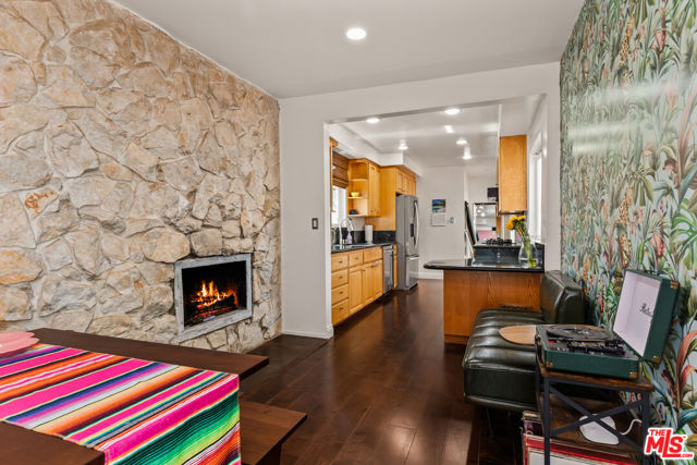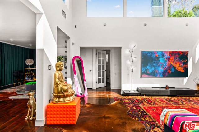 Welcome home to this stunning Mid-Century Modern retreat, perfectly situated south of the Boulevard! Step through the custom double doors into a breathtaking atrium featuring soaring 14-foot ceilings an ideal space for entertaining. Flooded with natural light, this impressive room showcases 36-inch-high double-pane windows, multiple skylights, and a dazzling Swarovski crystal chandelier.Behind you, the private primary suite offers a custom walk-through closet and a luxurious en-suite bath. The chef's kitchen boasts granite countertops, double wall ovens, stainless steel appliances, and a breakfast bar, seamlessly connecting to a cozy sitting area with a gas ice-stacked stone fireplace.Down the hall, you'll find two inviting guest bedrooms, perfect for family or visitors. Step outside to your own private oasis a large sparkling pool surrounded by terraced landscaping, a covered patio ideal for lounging or morning coffee, and an upper hilltop deck with sweeping city light and treetop views.Additional highlights include a spacious driveway, a two-car attached garage with a Tesla charger, and proximity to popular shops, restaurants, Whole Foods, Trader Joe's, Ventura Boulevard, and the 101 freeway.Experience the best of Woodland Hills living in this exceptional Mid-Century Modern masterpiece!