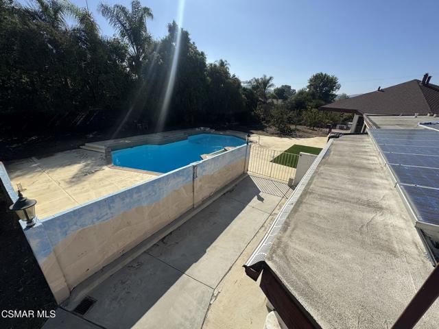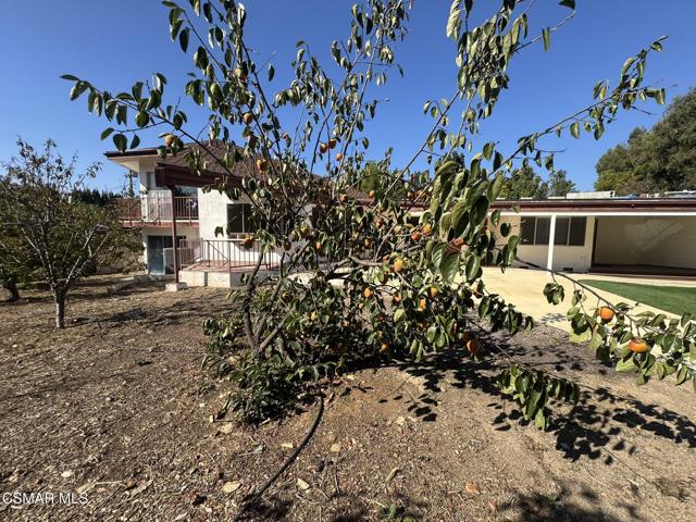 Welcome to this impressive 3-bedroom, 2 full bath and 2 half bath home offering over 3,000 square feet of thoughtfully designed living space. Nestled on a beautiful 1-acre lot, this property combines comfort, character, and privacy in perfect harmony. Step inside to discover expansive living areas bathed in natural light, soaring ceilings, and vintage finishes throughout. The kitchen is in the heart of this home with its original tile, plenty of cabinets, large island, dining area and an extension with an additional sink and cabinets. Large multi-level living room with the original fireplace and chandelier being the focal point and large wrap-around balcony. Spacious downstairs multi-level entertainment room complete with a mini bar, large closet, half bath with direct access to the side yard. The primary suite is a true retreat with plenty of space for you to cozy up to and includes a spacious walk-in closet, an additional mirrored doors closet and direct access to the rear yard. The primary en-suite bath features dual vanities, sauna and step-down shower. The large secondary bedroom with mirrored closet doors, private en-suite bath featuring single vanity and walk in shower. Lastly the third spacious bedroom with Jack-and-Jill half bath, direct access to the front yard via French doors. Outside, enjoy your own private oasis--in the rear yard, the large sparkling pool with outdoor shower, perfect for entertaining! Every fruit tree you can think of are scattered across the front and side yard! Long driveway, RV Access, large 2 car enclosed carport with laundry hook-ups. Central AC/heat, use of solar panels. Minutes away from shopping, restaurants, schools, hiking trails and more.