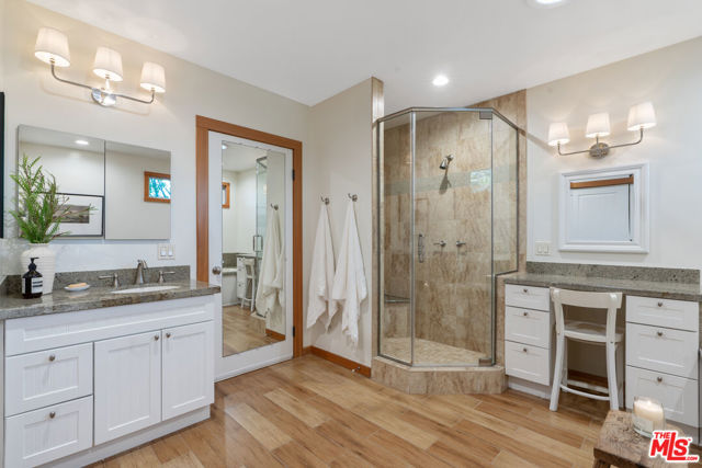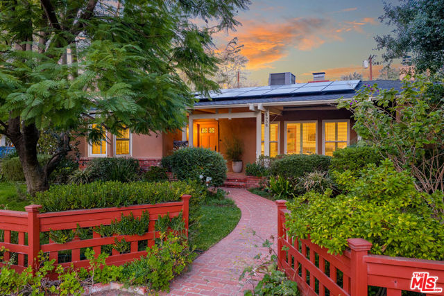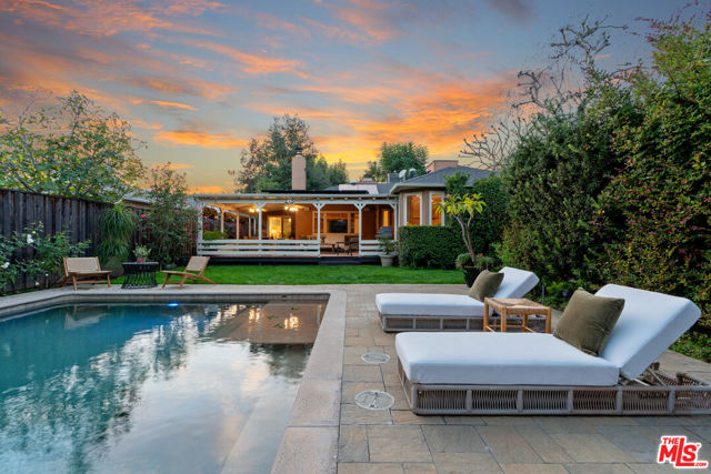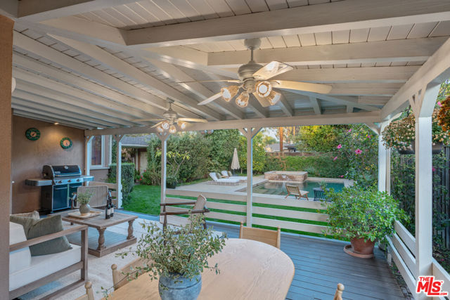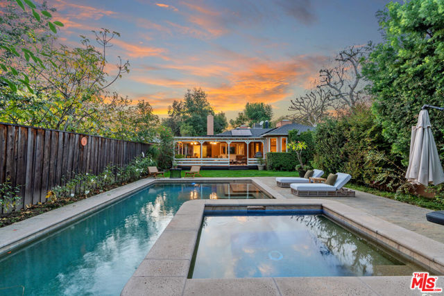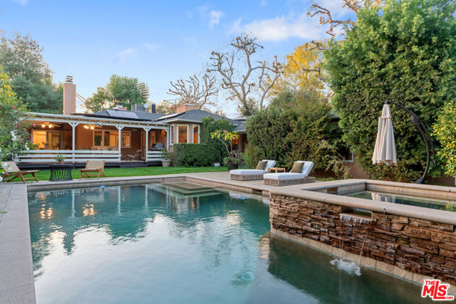 Charming Valley Village Craftsman on Coveted Street! Nestled on one of Valley Village's most desirable streets, this beautifully maintained Craftsman-style home sits on a lush 9,100 sq ft corner lot surrounded by mature trees and thoughtfully landscaped grounds. The serene setting perfectly complements the home's timeless architecture and warm character.Offering 4 bedrooms and 3 baths, the home features a spacious open floor plan with inviting living spaces ideal for both relaxing and entertaining. Two generous living rooms each showcase cozy fireplaces, custom built-ins, and abundant natural light. The kitchen boasts handcrafted wood cabinetry, a large center island, and exceptional storage, seamlessly connecting to the dining and living areas.The primary suite is a true retreat with a large walk-in closet and a spa-like bath complete with dual vanities, soaking tub, and walk-in shower. The entertainer's backyard is a private oasis with a sparkling saltwater pool and spa, a large grassy area, and an expansive wraparound covered patio with multiple seating and dining areas overlooking the lush landscaping.Additional highlights include solar panels (owned and paid in full), a newer HVAC system, and a detached two-car garage with private shed and storage space. Pride of ownership and craftsmanship is evident throughout, with the home lovingly cared for by the same owners for over 20 years. Located within the highly sought-after Colfax Charter School district, and just moments from Colfax Elementary, Valley Village Park, Gelson's, and major studios this is a rare opportunity to own a true Valley Village gem.