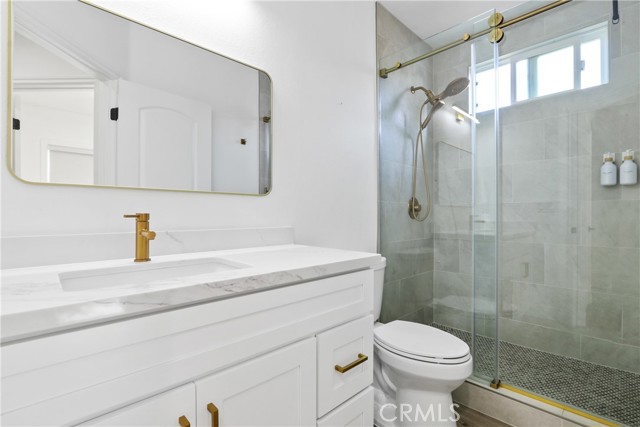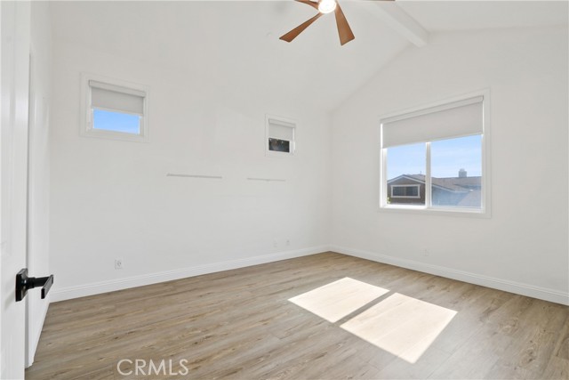 Fantastic End Unit Townhome in Los Alamitos. Beautifully remodeled two-level end unit townhome featuring 3 bedrooms and 2.5 bathrooms. The spacious layout offers comfort, privacy, and style. The master suite is located on the upper level with the main living area, which includes an open-concept design, vaulted ceilings, and a private balcony perfect for outdoor grilling and relaxation. Upgraded bathrooms include a luxurious master bath with a separate soaking tub. The home features newer laminate flooring throughout and a modern kitchen with quartz countertops. The property includes a two-car attached garage with EV charging capability. Located in a highly acclaimed school district and close to parks, shopping, and dining. This is the perfect home for families seeking quality education and a vibrant community. Don’t miss this opportunity, schedule a showing today!
