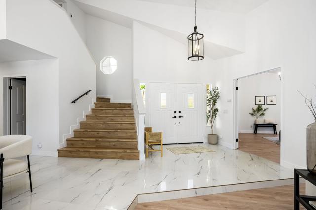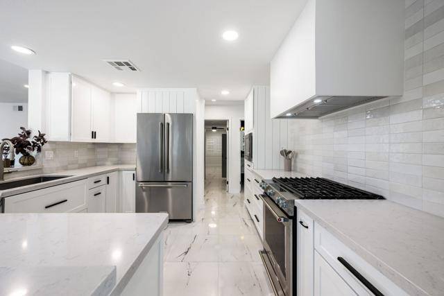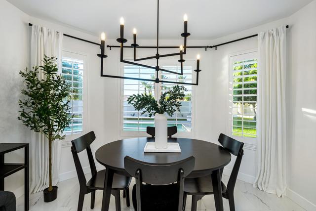 This completely remodeled and reimagined single-family home offers 2,793 square feet of modern living space with five bedrooms (PRIMARY & GUEST ARE DOWNSTAIRS) and three and a half bathrooms. Situated on a spacious lot of over a quarter acre in Regency Palms, it provides plenty of outdoor space to enjoy desert living at its best.No detail has been overlooked in the renovation. The home now features all-NEW bathrooms, a brand-NEW kitchen with NEW appliances, NEW flooring throughout, 2 NEW air conditioners, a NEW water heater, fresh NEW paint inside and out and a NEW pool heater .The floor plan is ideal for families or anyone who wants extra space. The PRIMARY suite is located on the MAIN FLOOR, offering convenience, privacy, and comfort. It includes a walk-in closet and a large spa-like bathroom with dual sinks, a separate shower, and a soaking tub. The open kitchen is a chef's dream, with stainless steel appliances, a gas stove, and a breakfast nook for casual dining. A separate formal dining area is perfect for hosting family and friends. Step outside to your private backyard retreat with mountain views, a heated pool and spa--perfect for entertaining or unwinding after a long day. Additional features include a separate laundry room, central A/C, and a security system. All of this is located in a quiet Palm Desert neighborhood with excellent schools, just minutes from shopping and dining on El Paseo.