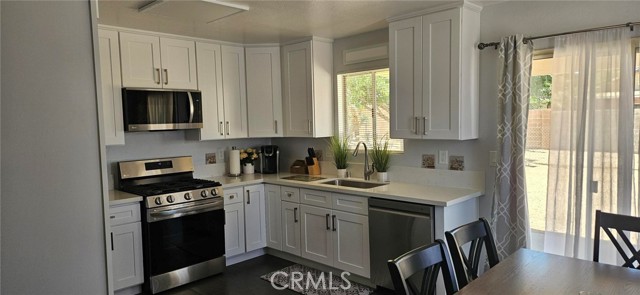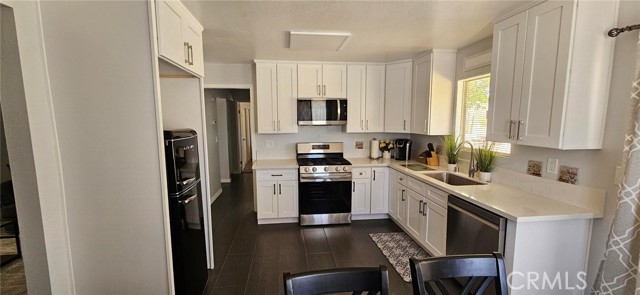 Excellent condition and prime corner lot. Move in ready. Spacious, tiled living room with a modern marble ledger fireplace. It has new kitchen with premium self-closing cabinets with new quartz countertops and single basin, stainless steel sink and pull-out faucet. New, matching stainless-steel appliances including stove, microwave and dishwasher. Large, carpeted bedrooms with generously big closets. Remodeled bathrooms. Central air and heat. Dual pane windows. Wi-Fi garage with finished walls and epoxy painted floor, door opener, thermostat and sprinkler timer for drip system. Newer roof. Oversize garage. Attractive and well-maintained corner, fully fenced with chain link, multiple trees that provide shade to the home and attractive flower gardens and bird bath. Lot has plenty of room for RV parking. Covered patio/porch in the front and back