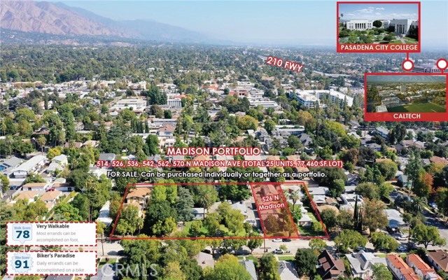 4 Single-story Bungalows several blocks north of Old Town Pasadena, Large ±13k SF Lot, highly desirable layout, Easy to Rent and Manage. 526-532 N Madison Ave, a bungalow style 4-units Single story apartment in the City of Pasadena. Situated only several blocks north of Old Town Pasadena, 2 blocks west of Los Robles Ave, and just within walking distance of many dining, shopping, and other attractions in Pasadena. It is situated on a quiet residential street surrounded by single family houses. This property is being sold together with 5 adjacent buildings to its north and south that are own by same seller – can be purchased together or individually (514 N Madison, 536 N Madison, 542 N Madison, 562 N Madison, and 570 N Madison). The property offers a highly desirable bungalow single-story layout (no adjoining walls) providing tenants with single family residential feel. It consists of 4 separate bungalows with a lush center courtyard/walkway providing serene atmosphere for the tenants. The unit mix is one (1) x 2bedroom+1bathroom and three (3) 1bedroom+1bathroom units, which makes it very easy to rent and manage. The property was built in 1940, has a total of ±3,326 SF building size (Average unit size is 830SF/unit) and is situated on a large ±13,185 SF lot. Each unit is charming with original hardwood flooring, ceiling fans, plenty of built in cabinets, tiled kitchen and bathroom, and in-unit laundry hookups. The front 1 bedroom unit (532) is currently vacant and may be delivered vacant. Parking is provided via detached 3 car garages and 1 open space in the back. Each unit has individual water heaters and separately metered for electricity and gas. Each unit has its own laundry hookups.