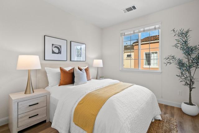 Bright, open, and beautifully transformed, this corner townhome in Santa Claras coveted Rivermark community showcases modern living at its finest. As an end unit, natural light wraps around the entire home giving every room an inviting glow all day long. Enjoy the warmth of new flooring, an impressive open layout and a bright living room with soaring ceilings and a cozy fireplace. The remodeled kitchen features sleek marble countertops, custom cabinetry, and stainless-steel appliances. Upstairs there are 3 bedrooms with 2 updated bathrooms and a laundry room. The primary suite offers a serene retreat with tree top views and a walk-in closet. Located just steps from Rivermark Plaza, Thamien Park, and Guadalupe Trail, with an easy commute to Nvidia, Google, Apple, and other major employers. Experience the perfect blend of style, comfort, and convenience in this move-in-ready home.