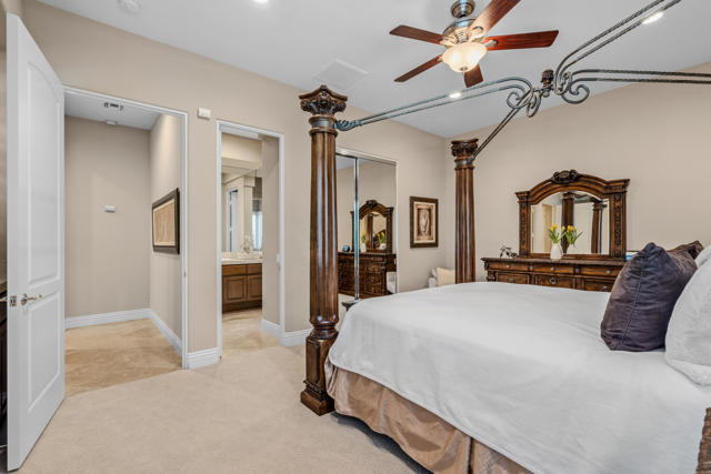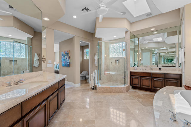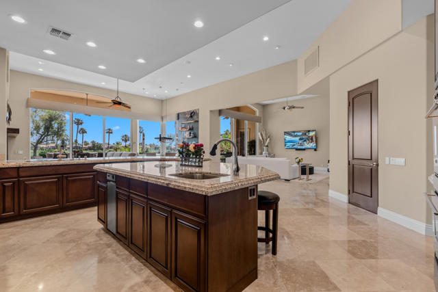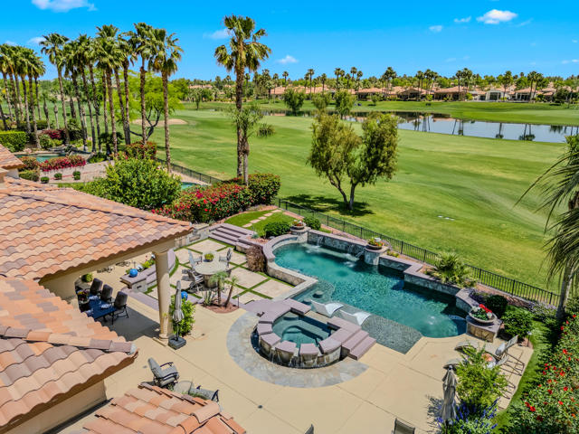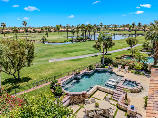 Location! Location! This lovely home has a mesmerizing lake and double fairway views! A beautiful upgraded and modernized Montana 3, situated on a cul-de-sac. The open floor plan has been reimagined and modified in 2015 by removing the wall that separates the kitchen-LR-FR. The gourmet kitchen is spacious, with granite countertops, and equipped with a large island, perfect for entertainment! Large Fleetwood sliding doors open to the resort style outdoor living area! A large outdoor kitchen is adjacent to a salt-water pool and spa. A cozy fireplace will keep you warm on the cool Desert evenings! The large master suite even has a private seating area and a fireplace. All bedrooms have their own private bath. The detached casita even has a kitchenette! This is an entirely customized modern home, with a three-car garage and turnkey furnished! Currently Available March & April 2026