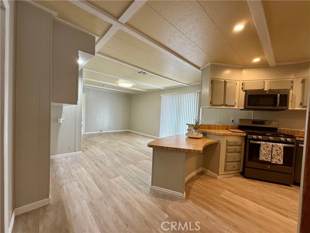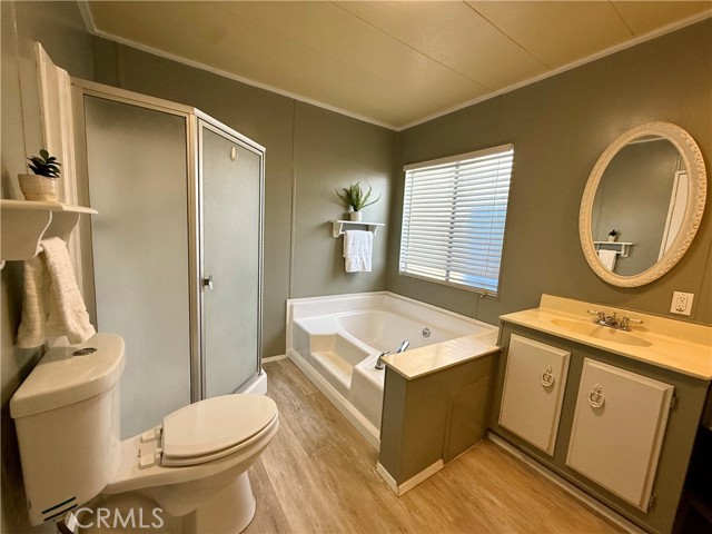 Welcome Home! Here’s your chance to own a spacious and well-maintained manufactured home offering 1,440 square feet of comfortable living. This desirable end unit features 2 bedrooms and 2 bathrooms, providing enhanced privacy and the rare benefit of a private, peaceful yard. Enter into the bright, oversized living room, the beamed ceilings and built-in storage add extra character and a welcoming atmosphere. The home has been recently upgraded with brand new vinyl flooring throughout. The kitchen is equipped with updated appliances and offers significant storage, including a dedicated pantry. The kitchen opens up to the den with sliding glass doors to the backyard creating a great flow for personal interaction with family and guests. The private primary suite provides a large closet and additional built-in storage. The attached, large bathroom features a walk-in shower, a separate deep soaking bathtub, double sinks, and a vanity area. A separate laundry room offers additional storage, enhancing the home's functionality. This property provides the opportunity for affordable living without sacrificing amenities. Residents enjoy access to a full suite of community facilities, including a refreshing pool and spa, a tennis court, a clubhouse, and an on-site convenience store. Combining generous space, quality updates with the opportunity to add your own style, a private outdoor area, and comprehensive community amenities, this manufactured home is an outstanding value and a must-see!