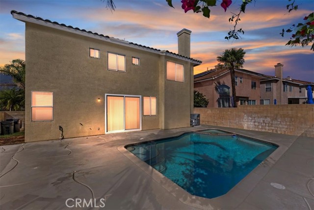 Super sharp home with a pool and spa located in the highly desired area of Hunters Ridge, Fontana. Four bedrooms three baths plus a den that could also be used for a bedroom. One of the bedrooms and baths are on the main floor. The kitchen is open to the family room and has a center island with full gas cooktop. Lots of counter and kitchen cabinet space. The family room features a new electric fireplace. There is walk-In pantry for storage. Large corner lot is well maintained, and rear yard has a heated in-ground pool and spa with additional patio areas for entertaining both family and guests. Property has block walls for which provide for low maintenance. The interior has been repainted with two tone paint, and the carpeting has been upgraded to new 32-ounce carpet in the bedrooms and upstairs hallway. The kitchen and bathrooms have upgraded tile flooring. The appliances have been upgraded. The garage walls have been painted; the floor has been coated with epoxy garage floor paint. No HOA fees. NOT FOR RENT OR LEASE.