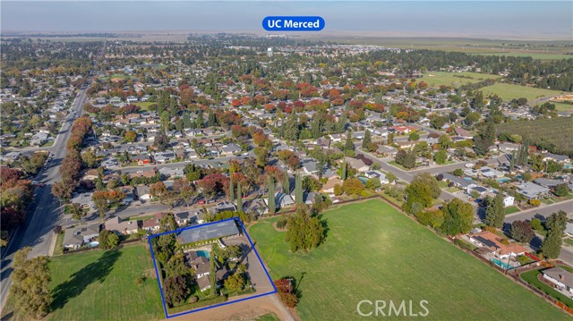 ABSOLUTELY GORGEOUS!! OLD WORLD CHARM LOCATED RIGHT HERE IN THE HEART OF MERCED! This property would make a wonderful Bed & Breakfast or a fabulous home with plenty of room for kids to roam! OR A GREAT WEDDING/PARTY VENUE! Built in 1915, updated in 1961.The home itself still has the original wood crown molding with a beautiful wood fireplace & mantel! Home located off the beaten bath in a county pocket within the city limits with close proximity to shopping, schools & UC Merced! The property features 3 large bedrooms, 5 bathrooms with the Primary ensuite downstairs & is located on approximately 3/4 of an acre. The kitchen has been updated with a Bosch dishwasher, double ovens and even offers a vegetable sink! Proceed up the gorgeous stairs with the beautiful original wood railing, into a very unique bathroom that hosts a soaking tub & a huge walk in shower & sink! The two large bedrooms upstairs have the original wood windows with wonderful views of the property! Now step outside onto the pavillion where you'll find a bar, a 1/2 bath & a changing room. The pavillion overlooks the beautiful pool & additional patio area for barbecuing & entertaining! The shed/carport/barn measures approximately 100' x 50', all of which is covered. Approximately 25' of the width of the shed is enclosed and can be secured. There are 3 carports. What can I say...this home is one of a kind! They don't build quality like this anymore!!!