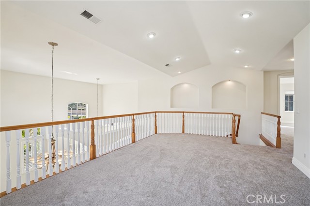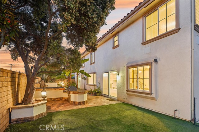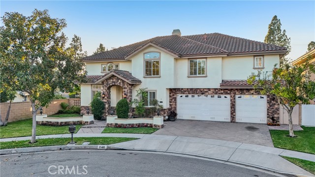 This stunning two-story corner-lot home, built in 2004, offers 3,926 sq. ft. of elegant living on a 7,429 sq. ft. lot. Featuring 5 bedrooms, 4.5 bathrooms, a spacious upstairs loft, and a first-floor office with stylish bamboo flooring, this residence blends warmth and sophistication. Nestled on a peaceful cul-de-sac, it boasts exceptional curb appeal with a beautifully landscaped walkway leading to a welcoming entry. Inside, soaring 20-foot ceilings, stately white pillars, custom porcelain tile flooring, new carpet, and fresh paint create a bright, open atmosphere. Expansive windows with plantation shutters fill the home with natural light. The gourmet kitchen is a chef’s dream, showcasing maple cabinetry, granite countertops, and premium Viking stainless steel appliances, including a six-burner cooktop and double oven. A full-height granite backsplash, large island with storage, and walk-in pantry add beauty and function. A fireplace anchors the adjacent family room that opens to an entertainer’s backyard paradise. The beautifully designed backyard features a flagstone patio with built-in natural gas BBQ, oversized island with seating, three-tier fountain, and built-in speakers to add a musical atmosphere. A separate corner is plumbed and wired for a spa—an opportunity to create your own private retreat beneath the stars. The first floor includes a large bedroom with full bath and patio access—ideal for visitors or multigenerational living—plus a separate office and stylish half bath. Upstairs, the expansive loft provides options as a second office, recreation room, or sixth bedroom. The luxurious primary suite is a serene escape with a spa-inspired bath featuring a walk-in shower, Jacuzzi soaking tub, dual vanities, marble flooring, and two walk-in closets. The large secondary bedrooms feature mirrored closets and either Jack & Jill or shared bathrooms. The upstairs laundry room adds convenience plus built-in cabinetry and sink. Additional highlights include a three-car garage with Tesla charger and extra laundry hookups, tankless water heater, solar panels, whole-house fan, dual-zone AC, and upgraded sound-insulated windows. Located within the top-rated ABC Unified School District—home to Whitney High School—and near Gonsalves Elementary, Carmenita Middle, Cerritos High, multiple parks, Cerritos Town Center, Los Cerritos Mall, & major freeways (5, 91, 605). Don’t miss your chance to make this exceptional property your new home—schedule a tour today!