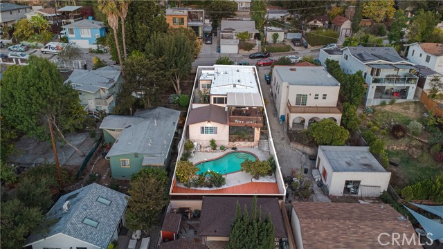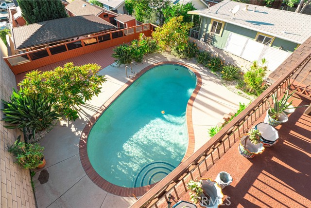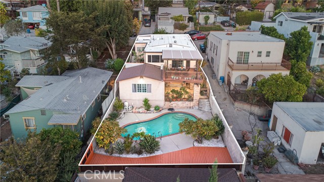 The Ultimate Entertainer’s Oasis with a Pool, Decks & Stunning Views! This beautifully upgraded Highland Park retreat offers the perfect blend of charm, sophistication, and resort-style living. Designed for seamless indoor-outdoor flow, it features an updated kitchen with granite countertops, ample cabinetry, and beautiful wood floors throughout the main level. Step outside onto the expansive patio balcony deck and take in breathtaking panoramic views overlooking your sparkling pool and spacious lower deck area—ideal for entertaining or relaxing under the stars. Two inviting patio decks provide endless opportunities for al fresco dining and gatherings, while lush landscaping and mature fruit trees create a tranquil, sun-drenched backdrop that enhances the home’s natural beauty. On the lower level, discover a lush courtyard framed by an orchid tree and garden, creating a serene retreat that leads to a versatile space with private access from the side and rear of the home—offering excellent ADU potential for guests, a studio, or rental income. A separate detached bonus room with its own bathroom and a rare California basement provide additional room for storage, recreation, or creative use. The front driveway accommodates two cars comfortably, adding convenience to this entertainer’s haven. Experience the best of Highland Park living—where timeless charm meets modern luxury—in an unbeatable location close to Downtown LA’s energy, neighborhood hotspots, and easy commuter access to the rest of the city.