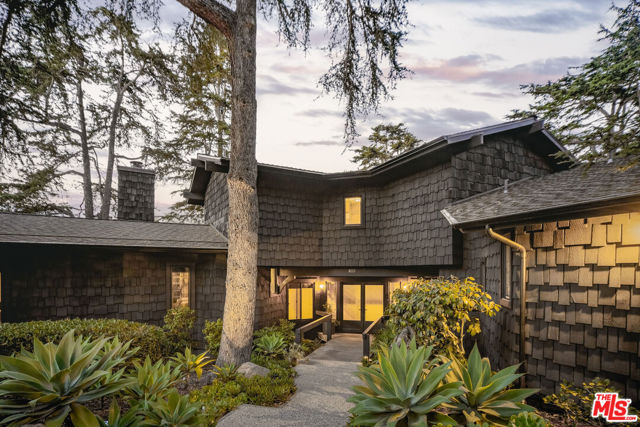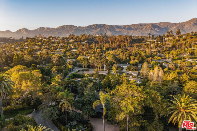Situated among Montecito's distinguished estates, this striking wood-and-glass residence offers a private sanctuary amid the conifers. Designed by noted architect Don Henderson and updated by designer Lee Stanton, the home features dramatic two-story ceilings and expansive picture windows that invite the outdoors in, creating the feeling of living within the surrounding gardens. An open kitchen and family room anchor the home, with a serene primary suite below and two guest rooms above. A sunken living room and flexible den add mid-century charm and versatility. With an expansive deck, oversized two-car garage, circular drive, and a peaceful wooded setting near Montecito's Upper and Lower Villages, this home beautifully blends architectural distinction with natural tranquility. Location Info