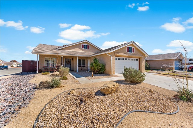 You’ll love everything about it — from the windows to the walls! This charming home sits on a corner lot and is walking distance to Westpark Elementary, the Library, stores, and more! The moment you step inside, you’ll notice the gorgeous fireplace and vaulted ceilings that create a warm and inviting atmosphere. The spacious kitchen overlooks the family room and offers plenty of cabinet and counter space for those who love to cook and gather. The primary suite features an ensuite bathroom with his and her closets, adding comfort and functionality. Outside, enjoy one of Rosamond’s largest backyards — big enough to add a pool or spa! Both the front and back yards feature covered patios, making this home perfect for relaxing or entertaining year-round.