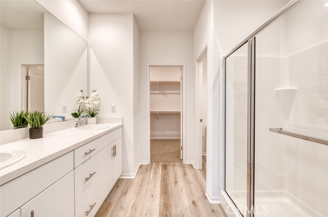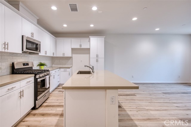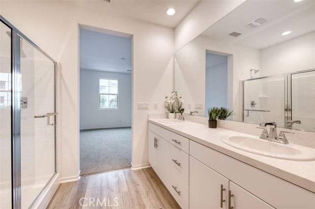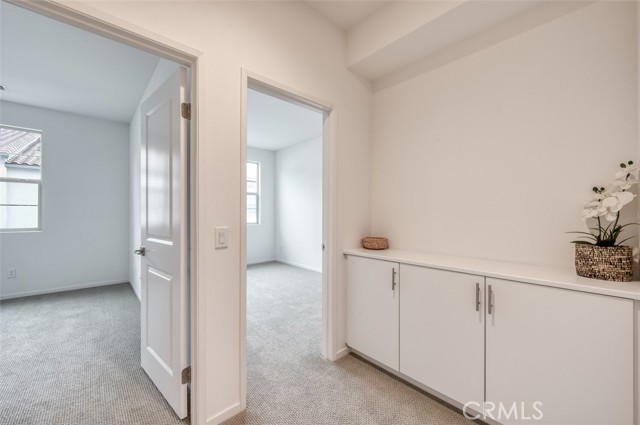 Light, bright, energy-efficient, 3 bedroom, 2 1/2 bath home. Upgraded Kitchen with large island, white quartz counters, white cabinetry and Stainless Steel gas range, microwave/vent hood and dishwasher. Open concept kitchen and living room with adjacent first floor powder room. All bedrooms are upstairs. Lots of natural light in the primary bedroom with en suite bathroom featuring double sinks, quartz counter, white cabinetry, spacious shower, walk-in closet and privacy toilet. Two secondary bedrooms with generous closet space including a walk-in closet in one bedroom. The upstairs hall bathroom has quartz counters, white cabinetry and bathtub with shower. Additional highlights include recessed lighting, upstairs laundry room with washer and gas dryer hook-ups, 2-car attached garage with epoxy floor finish, central air conditioning and included SOLAR production to lower your utility costs. Paradigm Performer waterproof floors throughout with carpeted bedrooms, stairway and halls. No one above or below. You will love living in this community, The Preserve at Chino, surrounded by parks, trails and resident recreation centers. The Parkhouse has a fully equipped fitness center, resort-style pool & spa, billiard & game rooms, surround-sound movie theater, business center, cyber café, along with lighted tennis courts, BBQ & picnic areas, open lawns, gathering spaces, tot lots and dog park.