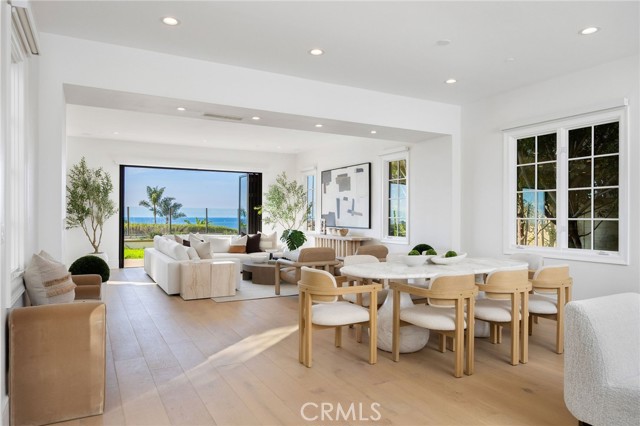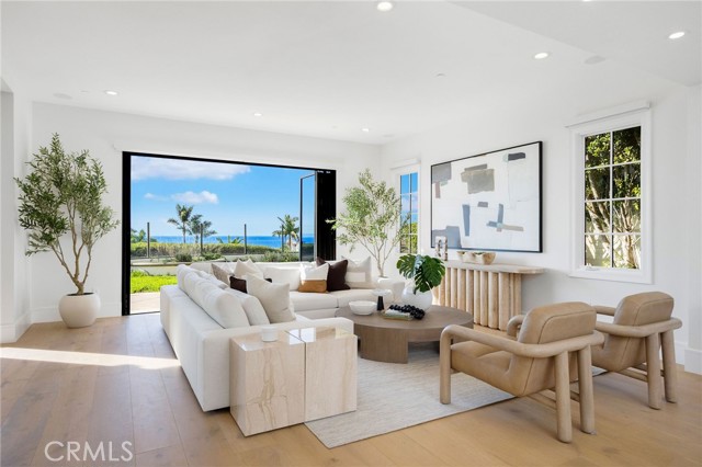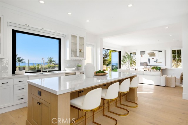 Experience the best of coastal luxury at 8 Baffin Bay, a newly renovated gem within the prestigious guard-gated community of Crystal Cove. Set on a rare 7,600± sq. ft. pie-shaped lot, this 5-bedroom, 5-bath residence offers elegance, privacy, and sweeping ocean and Catalina Island views. A dramatic two-story foyer welcomes you with soaring ceilings and a gracefully curved staircase. The open-concept great room, dining area, and family space flow effortlessly together, framed by a wall of glass that captures the Pacific horizon. The designer kitchen is a true centerpiece — featuring a porcelain-slab island, Wolf 6-burner range with dual ovens and grill, wine cooler, and custom cabinetry — blending both beauty and functionality. Two main-level bedroom suites provide flexibility for guests, a home office, or fitness space. Upstairs, the primary retreat offers resort-style living with a private terrace overlooking white-water views to Palos Verdes. The spa-like bath includes dual vanities, a soaking tub, makeup station, and a generous walk-in closet illuminated by natural light. The backyard’s peaceful ambiance and open vistas create the perfect setting for gatherings or quiet evenings. Residents of Crystal Cove enjoy 24-hour guard-gated security and access to the Canyon Club, offering a resort pool, spa, fitness center, tennis, and sports courts. With private access to Crystal Cove State Beach and close proximity to Fashion Island, Laguna Beach, and world-class dining and shopping, this home defines refined coastal living.