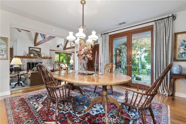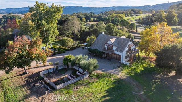 There is a place, tucked among the rolling hills of Paso Robles Wine Country, where time slows and the air carries the soft perfume of oak and vine. This magical estate, set on approx. 38.2 gently sweeping acres along coveted Vineyard Drive, is a haven of warmth, charm, and grace. The main residence, resting gracefully among the trees, radiates timeless character and sophistication. Inside, every detail has been thoughtfully crafted — three spacious bedrooms, three full baths, one three-quarter bath, and one half bath designed for comfort and ease. The kitchen is a gathering place, featuring a cozy breakfast nook with a Dutch door opening to the sunlit backyard and multiple seating areas. A formal dining room invites evenings of conversation, while the family room with a spectacular indoor/outdoor stone fireplace and multiple double doors spills onto a wraparound porch overlooking vineyards, oak groves, and rolling hills. Nearby, the guest house mirrors the main home’s craftsmanship. Upstairs offers open-concept living, balconies with stunning views, full kitchen, two bedrooms, and two baths, while below provides an office, hobby room, and workshop. With a B&B License, the guest home is both opportunity and invitation — to host, share, and live fully. Every window frames rolling hills, manicured gardens, and golden sunsets. On the porch, evenings pass beneath stars, the stillness broken only by crickets and a whispering breeze. In the heart of Paso Robles Wine Country, life takes on a slower, sweeter rhythm. Mornings bring the scent of lavender and distant quail; evenings, a glass of local wine and lantern glow. This is more than a home — it is a story of beauty, serenity, and timeless California spirit.