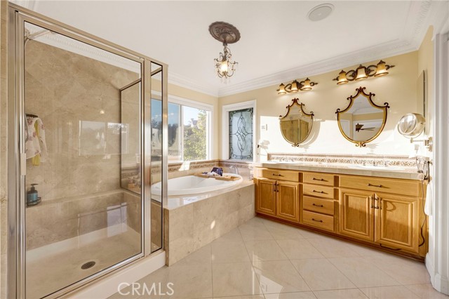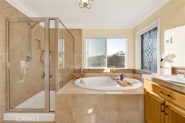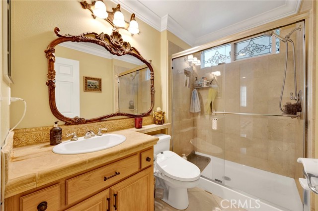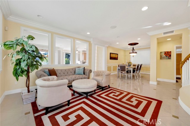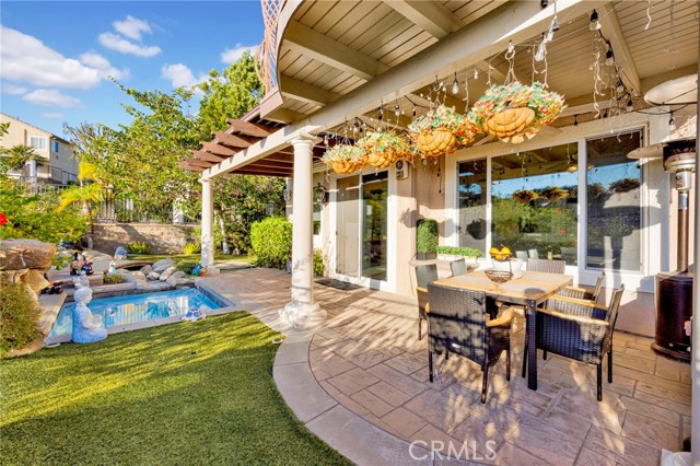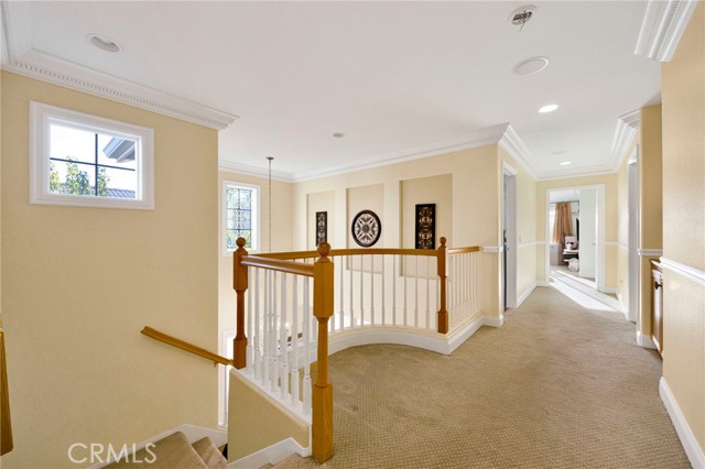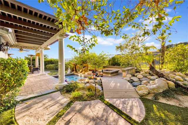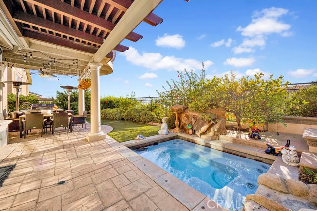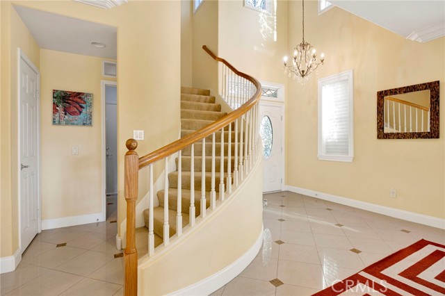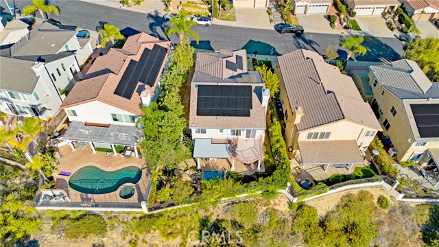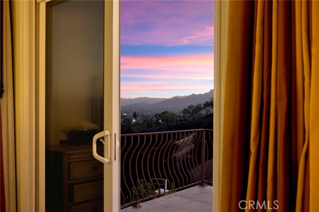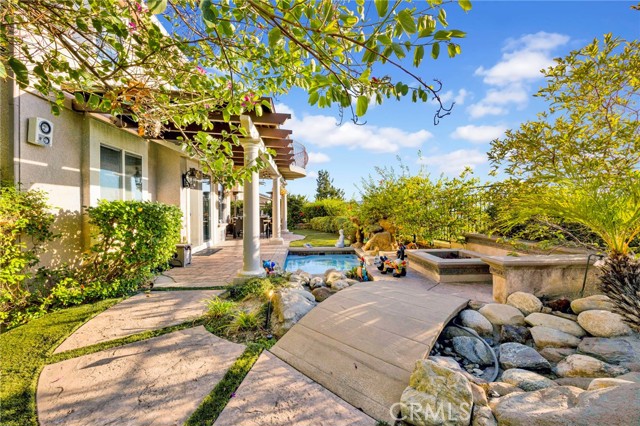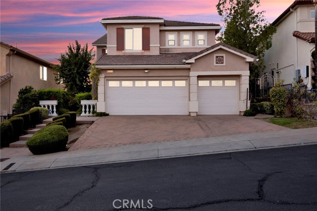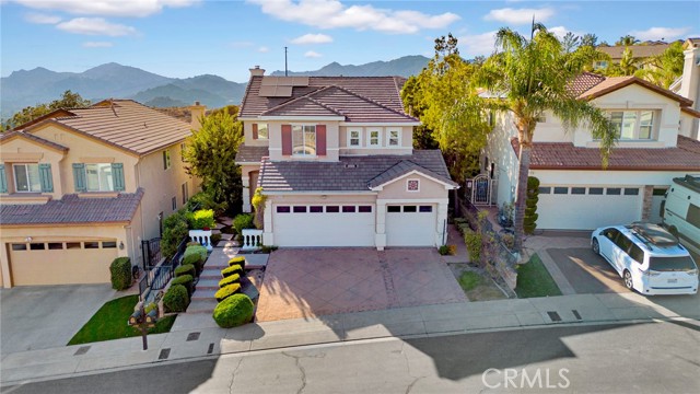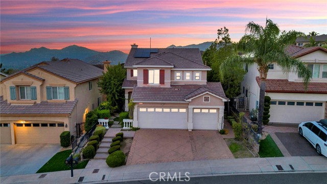 Unrivaled Views – Sorrento Living at Its Finest. DO THE COMPARISON! Unmatched value in the exclusive, guard-gated Sorrento community of Porter Ranch with sweeping city views. Elegant two story home, manicured landscaping and a serene sunset backdrop. 2,709 square feet of elegant & bright living space featuring striking curved staircase with wooden banister. The two story foyer highlights the beautiful chandelier and tiled flooring with decorative inlays. The walls are painted a warm, light yellow, complemented by custom white crown moldings. Adjacent to the living room is the dining section and a family room that seamlessly flows into a gourmet kitchen with granite counter tops, light wood cabinetry, large center island, custom backsplash and built in appliances like fridge, stainless steel double oven, cooktop, and dishwasher. Abundance of windows plus sliding door leads to the backyard from the family room to a resort backyard + paved patio area under a pergola supported by columns. An inviting spa among decorative rocks and unbelievable sunsets! First floor includes 1 bedroom, 1 full bathroom and a separate room for laundry adjacent to a direct access three car garage. Ascend to the second floor and you will find 5 bedrooms and 2 bathrooms. Spacious second floor landing is bathed in natural light from well placed high custom windows, natural toned carpet and expansive transition to the bedrooms and the private primary suite. 3 spacious bedrooms and a primary bedroom. The primary suite is the highlight of this home, the major highlight is the direct access to the private terrace with views of the hills and city. Views all the way to Santa Monica mountains, Santa Susana mountain, and the entire the valley. The primary en suite bathroom features tiled walk in shower and deep soaking tub with a perfect window placement to absorb in all the views. The dual sink vanity with ample counter space highlighted by two ornate, matching mirrors and stylish sconce lighting. Also not to forget the generous walk in closet ensuring a high end primary suite experience. Additional property feature includes solar panels. The home is in a desirable 24-hour guard-gated community with a TWO community pool/spa with low HOA dues of $305 per month. Come experience the difference in Porter Ranch.