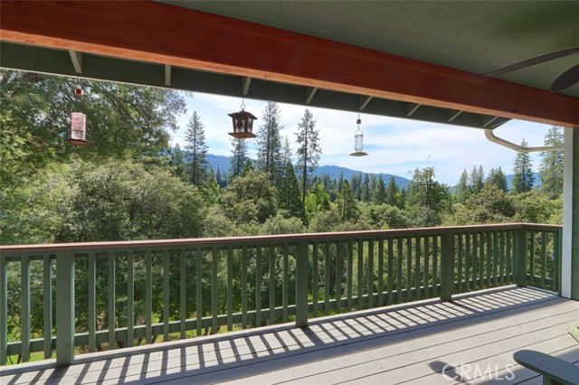 This dreamy custom 3 bedroom, 3 bath home borders the east fork of the Chowchilla River offers gorgeous views! This well maintained home was used as a peaceful retreat home with covered porches overlooking the river flowing by and lovely! The living room offers a beautiful rock propane fireplace with unique window design, grand high beam ceiling with fan and dormer windows to let the natural light shine in and an entertainment cabinet. The dining area and kitchen are spacious with tile counter tops, breakfast bar, stained wood cabinets for lots of storage space, recessed lights, tiled backsplash, dishwasher, propane stove, microwave and fabulous views from the windows! The primary bedroom is on the main floor with a quaint window seat, walk-in closet, adjoining bathroom with double sinks and shower and a private entrance. The laundry room is also on the main floor with a built-in utility sink and storage space. A large bonus room is currently used as a game room with access to the deck, 2 guest bedrooms and 2 guest baths and a large storage closet complete the interior floor plan. From the back covered porch you will enjoy the gentle breezes, sounds of the waterfalls from the Chowchilla River, birds chirping and just relax looking out of the wonderful 1.2+/- acres! The Chowchilla River offers you a great spot to take a swim or drop a fishing line in. Fire resistant Hardiplank siding is a great selling point! Schedule your appointment to tour this beautiful home and see why it is a dream home and location today!