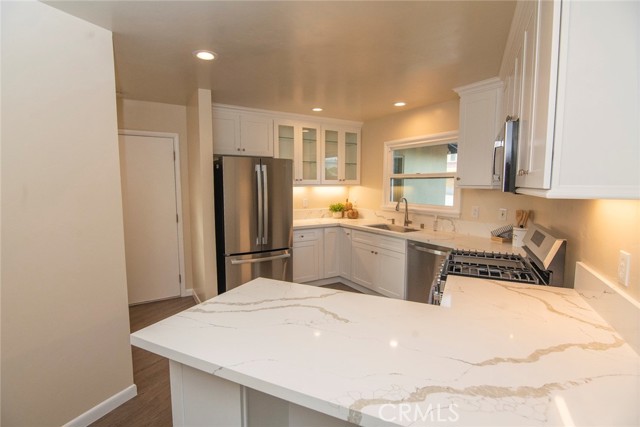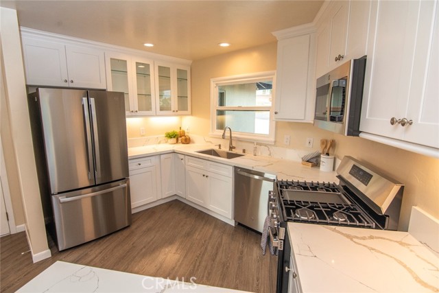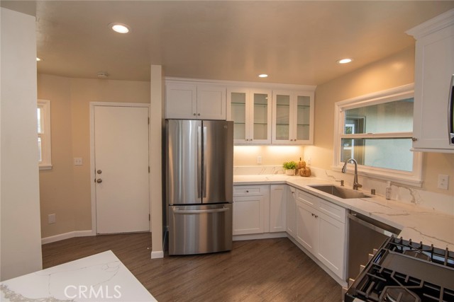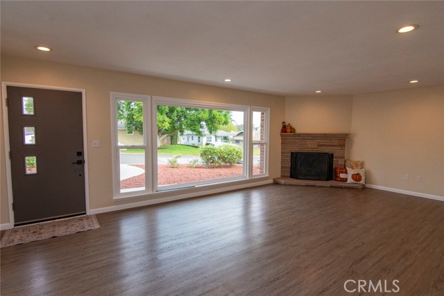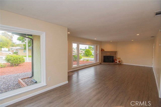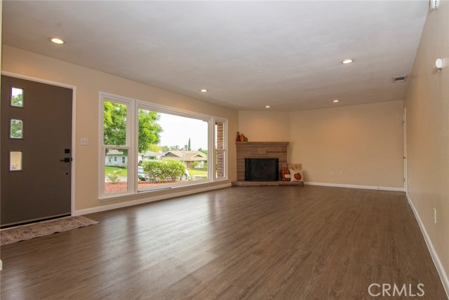 Welcome home to this spacious 3 bedroom 2 full bath home. Enter the Huge living room with cozy corner fireplace that flows into the dinning room, giving a light open "great room" feel to the living space. Next is the newly remodeled kitchen, including all new cabinets, lots of quartz counter space and tons of storage. All new Stainless steel appliances, including gas stove, microwave, dishwasher and refrigerator, finish off this great remodel. Don't miss the luxury vinyl plank flooring throughout this home that pulls it all together.. Bathrooms have also have upgraded cabinets and new fixtures. Modern upgraded lighting and ceiling fans in bedrooms, and of course central heat and AC! Add to this an enormous corner lot with low maintenance landscaping, large patio in back yard with many fruit trees just waiting for outdoor gatherings! A Two car attached garage, plus large driveway complete the picture. Located in the quiet La Sierra neighborhood of Riverside, this home is close to La Sierra University, schools, shopping and Riverwalk. Easy commute from 91 or 15 Fwy. This is a "must see" home you will want to call your own!