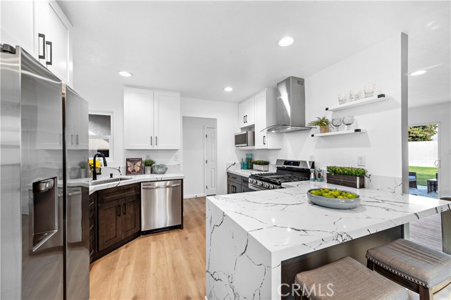 Step into this stunning, move-in ready 3-bedroom, 2-bathroom home on a quiet cul-de-sac. Where modern upgrades meet everyday comfort. Beautifully updated inside and out, this home showcases designer countertops, sleek cabinetry, and stainless steel appliances. The open-concept kitchen is the true centerpiece, perfectly designed for both cooking and entertaining. Featuring contemporary finishes and a thoughtful, functional layout. The spacious primary suite provides a relaxing retreat complete with an en suite bathroom. Both bathrooms have been fully remodeled with stylish new vanities and fixtures, adding a touch of luxury throughout. Step outside to enjoy a large, landscaped backyard, ideal for outdoor dining, entertaining, or simply relaxing under the California sun. Additionally you'll find a refreshed roof and air conditioning. The two-car garage features epoxied floors and a washer/dryer for added convenience. Centrally located just minutes from South Coast Plaza, Los Cab Sports Club, and Mile Square Park, this beautifully upgraded home offers modern style, comfort, and convenience-the perfect combination for today's Southern California lifestyle.
