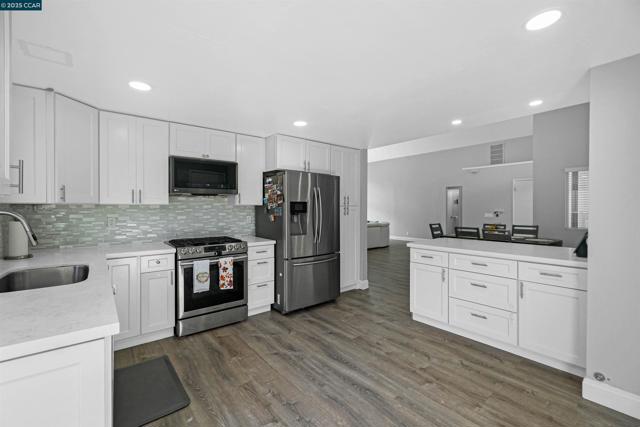 Just imagine a life where breathtaking park and ridge views are the backdrop to your everyday, beginning in this truly special, elegantly updated contemporary ranch. Thoughtfully nestled on a coveted cul-de-sac in the quiet backroads of Pinole, with quick access to Martinez and Orinda, this home instantly captivates. High ceilings and skylights amplify natural light, creating an unmistakably open feel, while laminate floors flow seamlessly throughout. The remodeled chef’s kitchen stands out with sophisticated functionality, highlighted by quartz countertops. A dining room designed for gatherings connects effortlessly to a comfortable living room anchored by a fireplace. Are you open-minded about owning a home where every detail has been meticulously updated? You’ll find two remodeled bathrooms along with a spacious primary suite, complete with direct backyard access and its own brand-new mini-split system for personalized comfort. The home also includes a newly installed AC unit, adding to its efficiency and move-in readiness. Your backyard directly borders the serene Pinole Valley Park, offering ultimate privacy and stunning natural views. This property is unquestionably special and represents a rare opportunity to step immediately into a refined, view-oriented lifestyle.