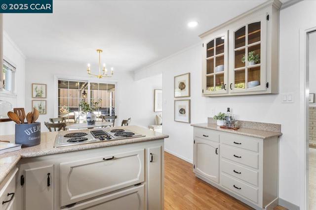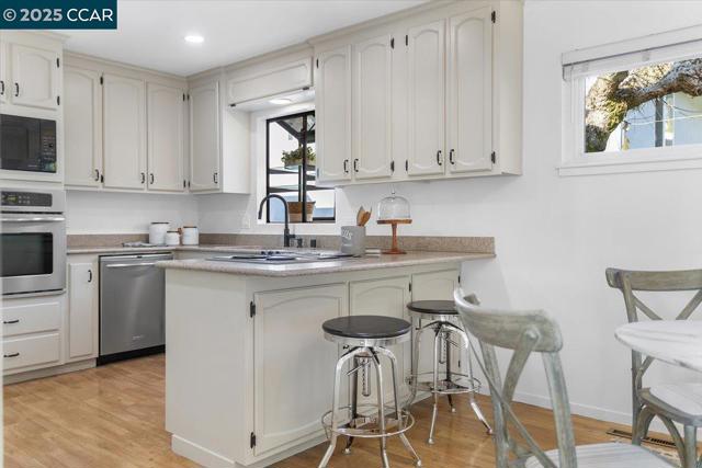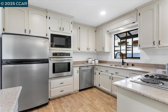 Welcome to this updated split-level home, positioned on a desirable corner lot on a quiet court in one of Castro Valley’s most desirable neighborhoods. Located near top-rated schools, downtown CV, & the scenic trails of Lake Chabot Regional Park, this home offers convenience & natural beauty just moments away. Step inside to the main level feat. a living room w/a classic brick fireplace. The updated kitchen boasts ample cabinetry, modern appliances & a dining area w/slider door that leads to the backyard—ideal for indoor/outdoor entertaining. The private backyard features a newer Trex deck w/cover, providing space for outdoor dining & play. Upstairs, you’ll find 3 bedrooms, includ. the primary suite, along w/beautifully updated bathrooms, both w/walk-in showers, tile floors, & brand-new vanities. The lower level offers a versatile bonus space w/its own full bathroom & separate exterior access, this level is perfectly suited for a secondary family room, in-law living or a private work-from-home setup. Add.' l highlights include A/C, a 2-car attached garage w/storage, brand new paint thru-out, new light fixtures, new carpet & more. A fantastic opportunity at an exceptional price! OPEN 12/6 and 12/7 from 2- 4 PM