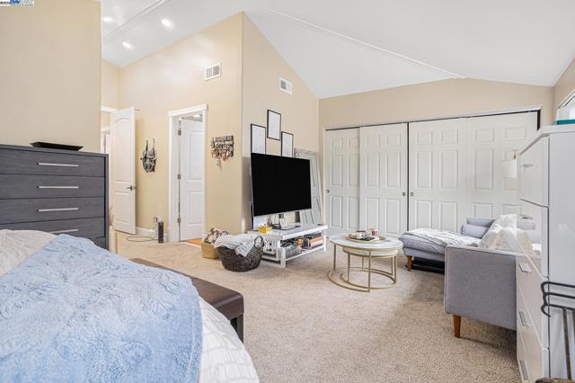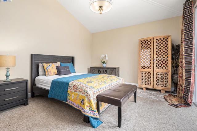 Welcome to this beautifully upgraded and expanded 3-bedroom, 3-bath Woodland Estates home, set on a generous 12,900 sq. ft. lot with approximately 2,200 sq. ft. of living space. This is a rare opportunity to own a property offering breathtaking panoramic views of the Bay, San Francisco, and the Bay Bridge. The open-concept floor plan is ideal for entertaining and features a gourmet kitchen with double refrigerator, high-end 48” stainless gas range, granite countertops, walk-in pantry, and stylish custom cabinetry. The spacious living area boasts vaulted open-beam ceilings and a decorative electric fireplace that adds warmth and character. The luxurious primary suite includes a walk-in closet and a beautifully appointed private bathroom. A second master bedroom provides added flexibility, while the third bedroom offers abundant natural light. A separate laundry room adds convenience. Energy-efficient upgrades include an owned 26-panel solar system. The detached, oversized 2-car garage features overhead storage and an electric car charger. Outdoors, you’ll find a synthetic front lawn and a low-maintenance backyard with pavers—perfect for gatherings while enjoying the afternoon sunset. Located in Woodland Estates, nestled among the oak trees and canyons of the Hayward Hills.