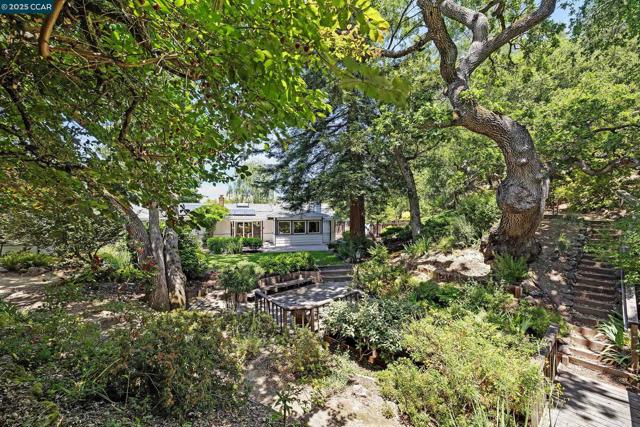 Tucked away in a cul-de-sac in one of Lafayette’s most sought-after neighborhoods, this beautifully maintained 3-bedroom, 2.5-bath home blends privacy, charm, and convenience. Step inside to find gleaming original hardwood floors, and abundant natural light that enhance the home’s warm and airy ambiance. The living room welcomes you with a sunny bay window and a cozy fireplace, flowing into the dining area and updated kitchen. The kitchen features ample counter space, newer appliances, and skylights that bathe the space in sunlight. A flexible bonus room, currently used as an office, offers direct access to the tranquil backyard. Just off the dining area, you’ll find the family room with a wood burning fireplace, next to it, the powder room, and the laundry area. Step outside to a serene backyard sanctuary with no rear neighbors, featuring mature trees, a stone patio, and a seasonal creek that comes alive during the rainy months. The serene primary suite includes a private bath and generous closet space, while two additional bedrooms share a stylishly updated hall bathroom. Additional highlights include dual-pane windows, skylights in the kitchen and living areas, a large two-car garage, side yard access, level lawn and garden pathways. Experience the serenity of this property.
