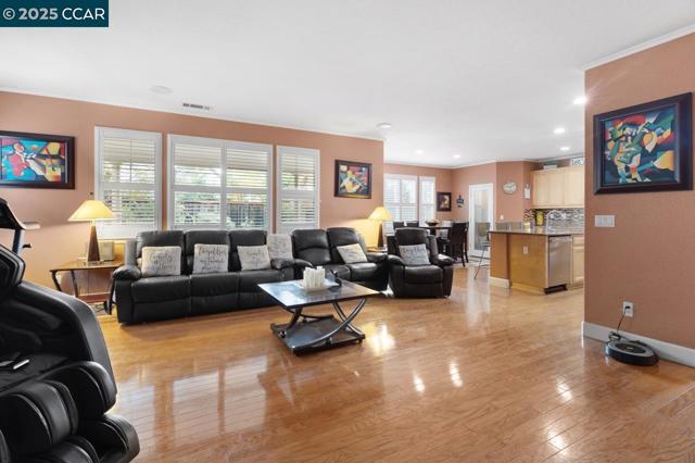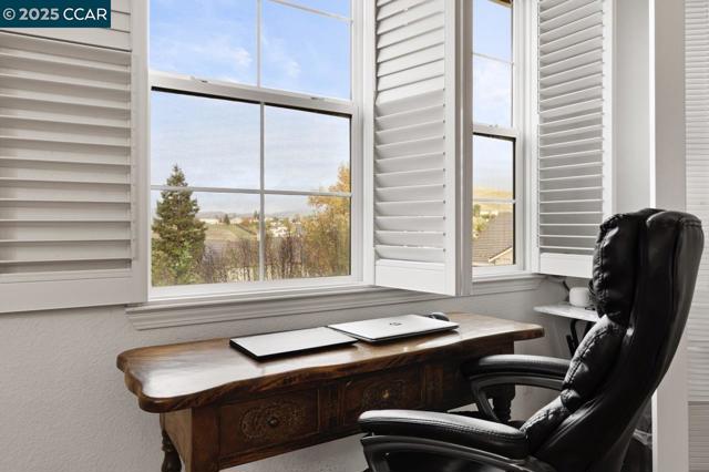 Nestled among rolling hills, approximately 30 miles east of San Francisco lies this beautiful property in one of Concord's most sought after neighborhoods! This house boasts of a gorgeous living room with high ceilings, a very spacious primary suite in the upper level with a dreamy office/sitting area with its own fireplace and a view. 3 more bedrooms and a full bath are also located in the upper level. Public records show 4 bedrooms only, however, there is an ensuite bedroom downstairs with a closet and a full bath. Kitchen has granite island and countertops with abundant maple wood cabinetry that flows into the family room with a fireplace and customized built in cabinets. Enjoy a serene, landscaped backyard with fruit trees and covered pergolas. Just a short walk to the Clubhouse where you can host special events or use the playground, pool, basketball, pickleball and tennis courts. Conveniently located near walking trails, community parks, shopping, dining, two Bart stations and nationally recognized John Muir Medical Center. Also, a great family choice as this community is part of the highly acclaimed Northgate High School. Now is your chance to own this gem!