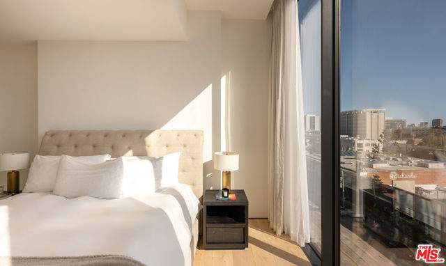 FULLY FURNISHED LEASE IN LA'S PREMIERE CONDOMINIUM. DESIGNED BY WORLD RENOWNED ARCHITECT OLSON KUNDIG. This stunning south-facing sixth-floor residence offers breathtaking panoramic views to the south, east, and west, flooding the space with natural light throughout the day and showcasing glittering city lights by night. The thoughtfully designed open floor plan features premium white oak floors and floor-to-ceiling windows, complemented by recessed art lighting and the finest quality appointments throughout. Every detail reflects exceptional craftsmanship, from the Sub-Zero, Miele, and Gaggenau appliances to the Calacatta Gold marble, custom bronze door handles, and hand-stitched leather accents. The luxurious primary bedroom includes a spacious walk-in closet, double vanity, spa shower, and soaking tub, while the guest bedroom boasts beautiful south-facing views and its own walk-in closet. 8899 Beverly represents Olson Kundig's "Love Letter to Los Angeles" a truly iconic creation by the AD 100 architect and a LEED Gold-certified masterpiece that stands as the finest new development to grace the Los Angeles skyline. This exceptional property offers unparalleled amenities and full-service living with 24-hour concierge service, 24-hour valet parking, and a state-of-the-art Techno Gym fitness center featuring a private studio. Outside, discover a lushly landscaped quarter-acre oasis with a resort-style pool, spa, fireplaces, and custom outdoor kitchen. The prime West Hollywood location puts you moments away from premier dining and shopping destinations, grocery stores, and everything the neighborhood has to offer, including the new Stella Restaurant conveniently located on the ground level. Experience the epitome of luxury living in West Hollywood.