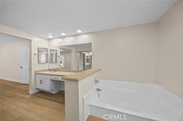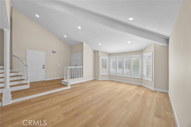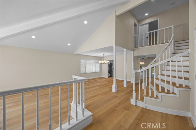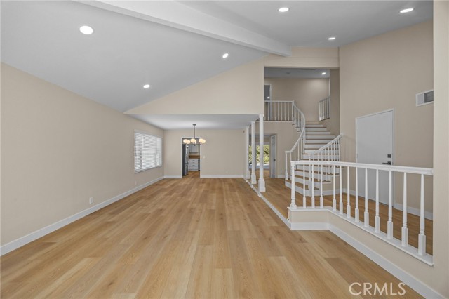 Welcome to this beautifully refreshed home located at the end of a quiet cul-de-sac just steps from the scenic Venta Spur Trail and Silkwood Park. Enjoy the convenience of walking to Brywood Elementary, Sierra Vista Middle School, and Chinese Immersion Academy (ICIA)— a highly desirable academic corridor in Irvine. Upgrades include new luxury vinyl plank flooring, fresh NEW interior paint, NEW recessed LED lighting, NEW double-paned windows & slider, ALL NEW window coverings, NEW toilets, NEW shower fixtures, & New 200 AMP Electrical Panel. The bright living room welcomes you with soaring vaulted ceilings. Open kitchen offers abundant storage and counter space and overlooks the warm, inviting family room with a fireplace & a wet bar. A main floor BR with an adjacent half bath provides flexibility for guests, a home office, or multi-generational living. The spacious open kitchen overlooks the family room, creating a seamless flow for everyday living and entertaining. It features freshly painted white cabinetry, recessed lighting, granite countertops, and stainless steel appliances, including a new range hood vented to the exterior. A new kitchen faucet and Reverse Osmosis (water purification) add convenience and quality. Large windows bring in natural light and frame views of the backyard, making the kitchen both functional and welcoming. Upstairs, the primary suite is exceptionally spacious and feels like a true retreat. It comfortably accommodates a king-size bed & features its own fireplace, NEW recessed lighting, NEW ceiling fan, and a walk-in closet. The secondary BR is also notably larger than a standard bedroom, offering versatility for kids’ rooms, shared rooms, office/studio space, or a guest suite. The backyard is truly an extension of the living space and is one of the highlights of this home. With expansive NEW stamped concrete patios, beautiful NEW green turf areas, NEW irrigation, and NEW LANDSCAPE provides the perfect backdrop for outdoor relaxing and entertaining. Host weekend BBQs, set up outdoor dining, enjoy play space, or create cozy lounge areas—the yard is generous, private, and ready to be enjoyed. The front yard also features NEW STAMPED CONCRETE, enhancing curb appeal and providing a clean, welcoming entry. With its peaceful cul-de-sac location, refreshed interior, expansive backyard, and close access to parks, trails, and top-rated schools, this home offers the comfortable, convenient Irvine lifestyle Northwood is known for.