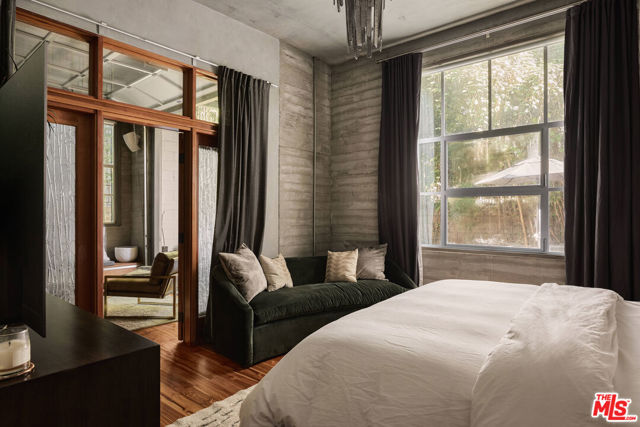 Experience loft living at its finest in one of West Hollywood's most sought-after boutique buildings with only eleven exclusive residences. This acclaimed unit, once featured in Architectural Digest, offers a rare blend of design pedigree, privacy, and premier location. The expansive open floor plan is defined by 11-foot ceilings, oversized industrial steel windows, exposed ductwork, and a dramatic aluminum roll-up door that seamlessly connects the interior to a generous private patio, ideal for effortless indoor/outdoor entertaining. Two private, ensuite bedrooms are situated on opposite ends of the loft for maximum separation and comfort. The chef's kitchen features top-of-the-line stainless steel appliances, and a large in-unit laundry room provides additional convenience and storage. Residents benefit from controlled access, security cameras, and two side-by-side parking spaces, along with ample guest parking within the gated subterranean garage. Set near to iconic Melrose Place, this places you moments from the area's finest dining, boutiques, galleries, and nightlife. A rare opportunity to lease a residence in one of West Hollywood's most coveted enclaves.