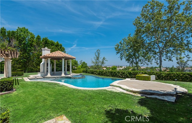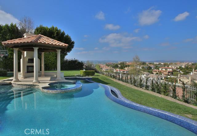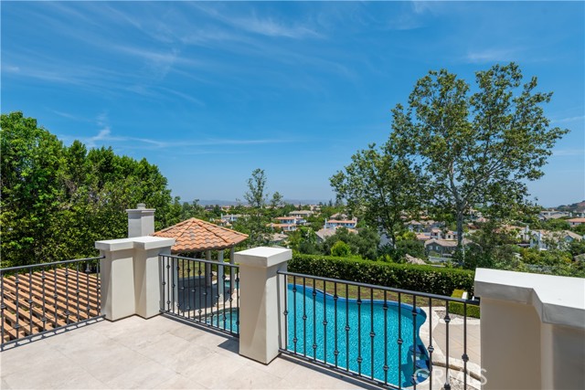 BOM subject to cancellation of current escrow. Sweeping views highlight this beautifully upgraded home. Model sharp throughout, this New Millennium Classics Plan 2 is light and bright with a sunny, open floor plan. The home features 6 bedrooms (including the courtyard casita with bath) plus a custom office, a nicely remodeled chef's kitchen with center island that opens to the family room highlighted by wood floors and cozy fireplace, plus there's a spacious living & dining room combination that's perfect for casual entertaining. The generous primary suite offers an all stone bath, dual custom closets, cozy fireplace, big picture windows, and a walk-out balcony with views over The Oaks and to the mountains beyond. The spacious, very private and lushly landscaped grounds include an Infinity edge pool, spa, gazebo with fireplace and T.V. center, large BBQ center, a sports court, two covered patios, and courtyard entry with fountain. This turn-key home is move-in ready.
