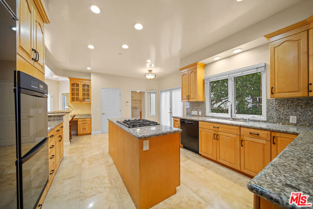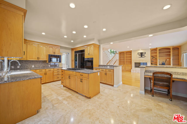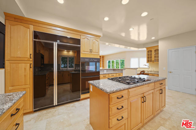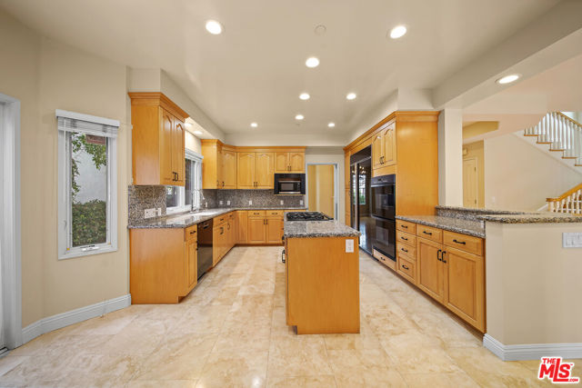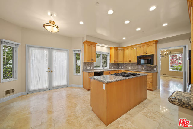 This immaculate 2,878 sq ft, 4-bedroom, 4-bathroom Contemporary Mediterranean home in Beverly Hills is a must-see. The two-story residence features maple wood and travertine floors throughout, and a filling of this beautiful home with light from its surrounding windows. The gourmet granite kitchen boasts a Dacor double oven, Sub-Zero refrigerator, center island with gas cooktop and downdraft, breakfast area, and built-in workspace, all overlooking the family room with a gas fireplace and entertainment area leading to the grassy backyard. The first floor also includes a formal dining room, living room with fireplace, maid's room, and laundry room. Upstairs, find three bedrooms, including two Jack and Jill style with walk-in closets and one with a built-in workspace. The expansive primary suite spans the full width of the house, featuring a stunning double-vanity bathroom with a separate tub and shower, and a large walk-in closet. Available for lease immediately.