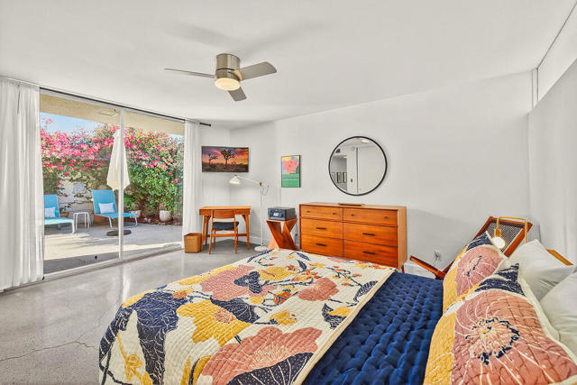 2BD 2BA Mid-Century Modern one level condominium designed by renowned William Krisel in prestigious Indian Wells Country Club, a member of the INVITE Club (formerly ClubCorp). The walls of glass offer tons of natural light. Open floor plan with polished concrete floors. A nod to retro throughout. Primary Bedroom has direct access to the private courtyard and electric fireplace, dual sinks in bathroom and tiled shower and walk-in closet. The guest bedroom is spacious and also has direct access to the private courtyard. The guest bathroom features a tiled shower. This condominium opens to lush landscape. The pool area boasts a fabulous resort appeal. Full size washer & dryer inside condo. Detached 2 car garage is only steps away. Contact agent with any questions or to book this luxury rental.
